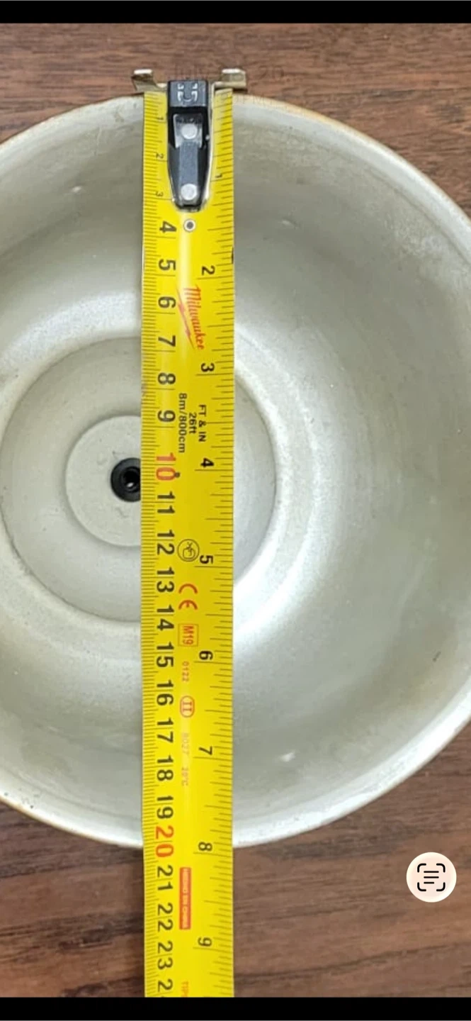 This decorative urn has an antique finish with scroll details. It's approximately 8 inches tall and 6 inches wide. This piece can be used as a planter or for decorative display.