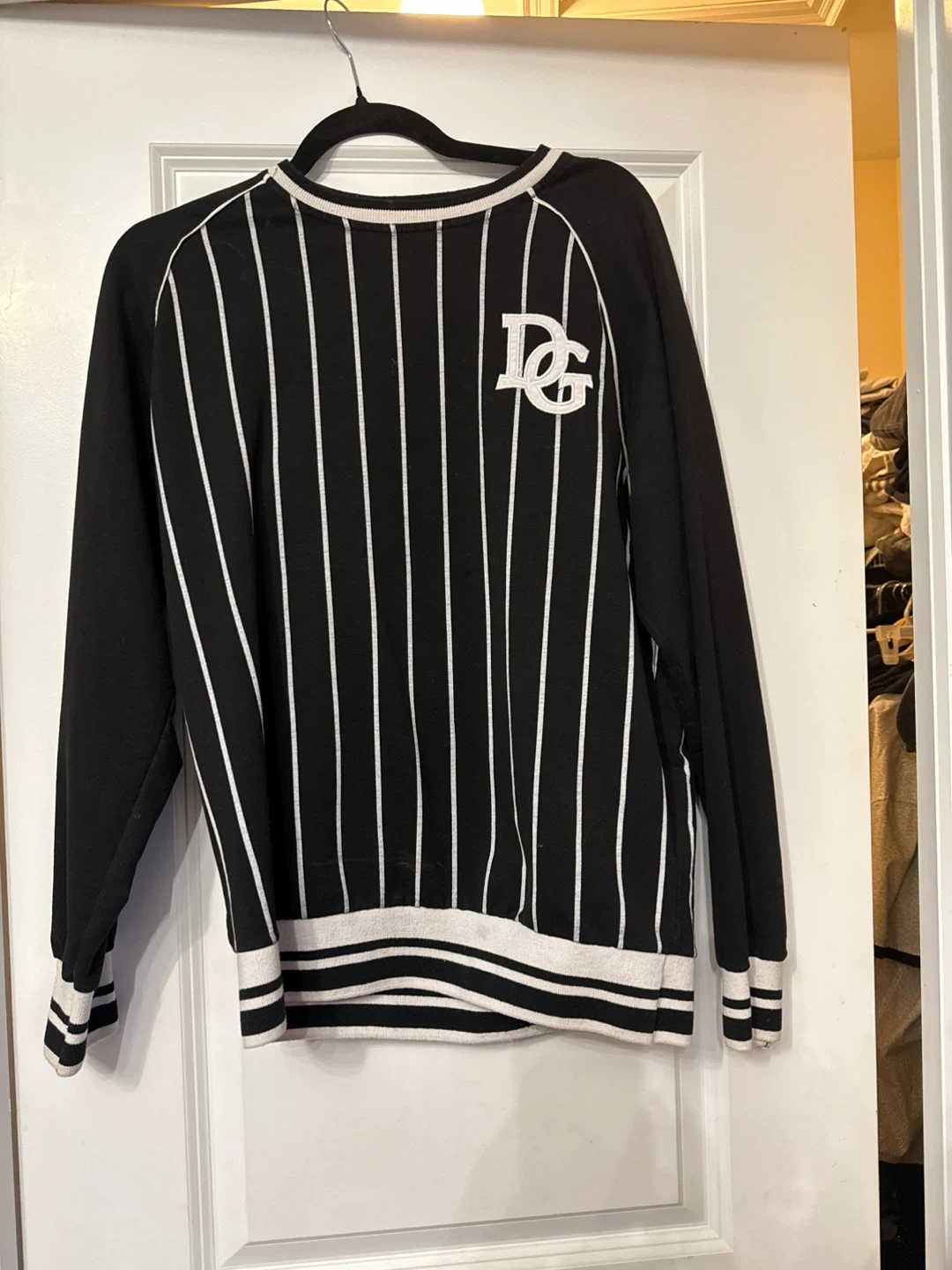 78Stylish Dolce & Gabbana sweatshirt with a cool black and white striped pattern! It's in great condition and features the iconic DG logo. Perfect for adding a touch of designer flair to your wardrobe