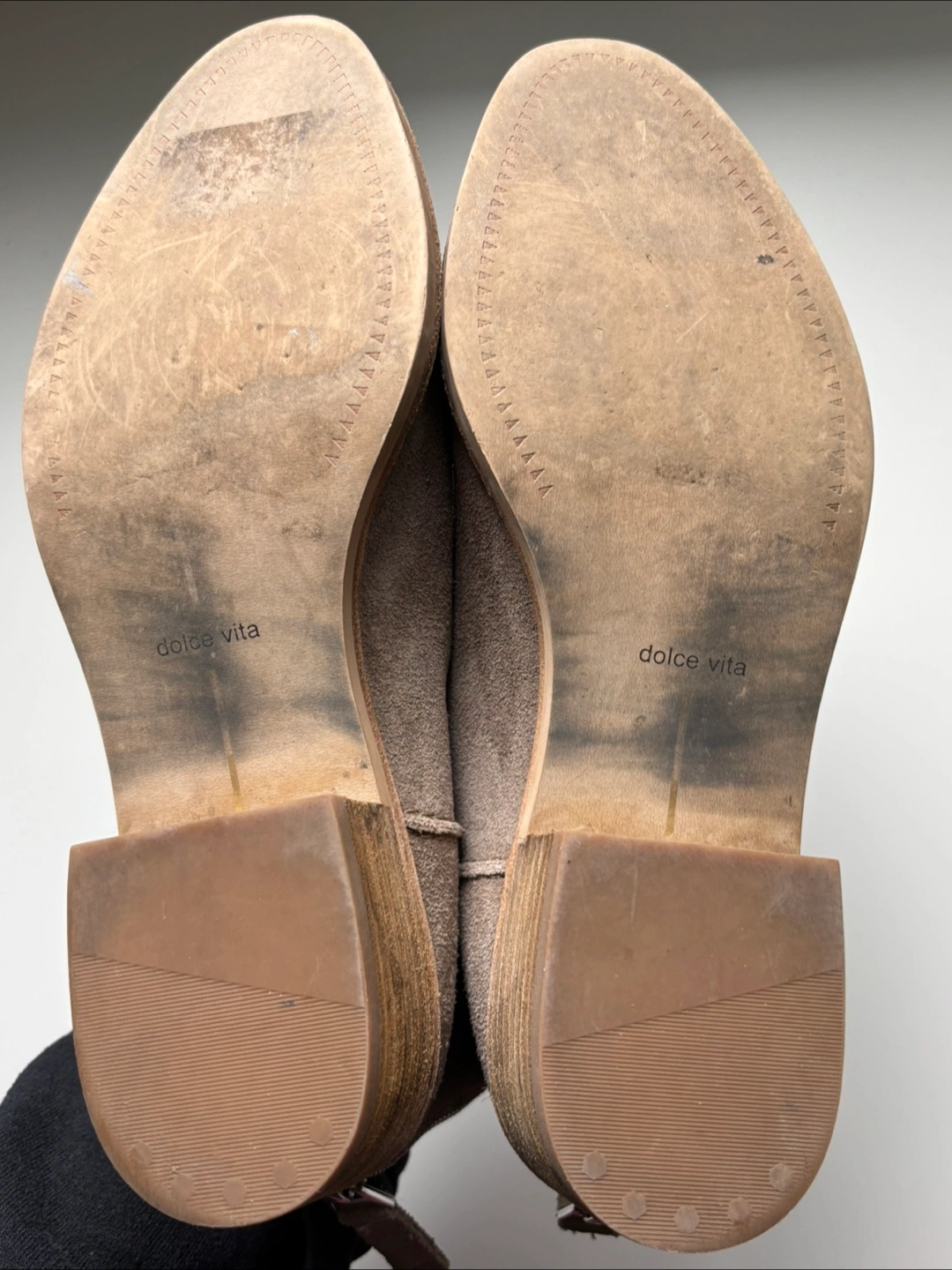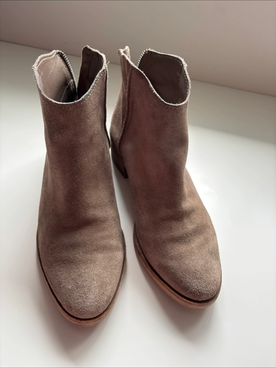 Selling a pair of Dolce Vita Tucker ankle boots in size 7.5. They're a lovely neutral colour and made with a leather upper. The soles show some wear, but they're still in good condition and have lots of life left!
