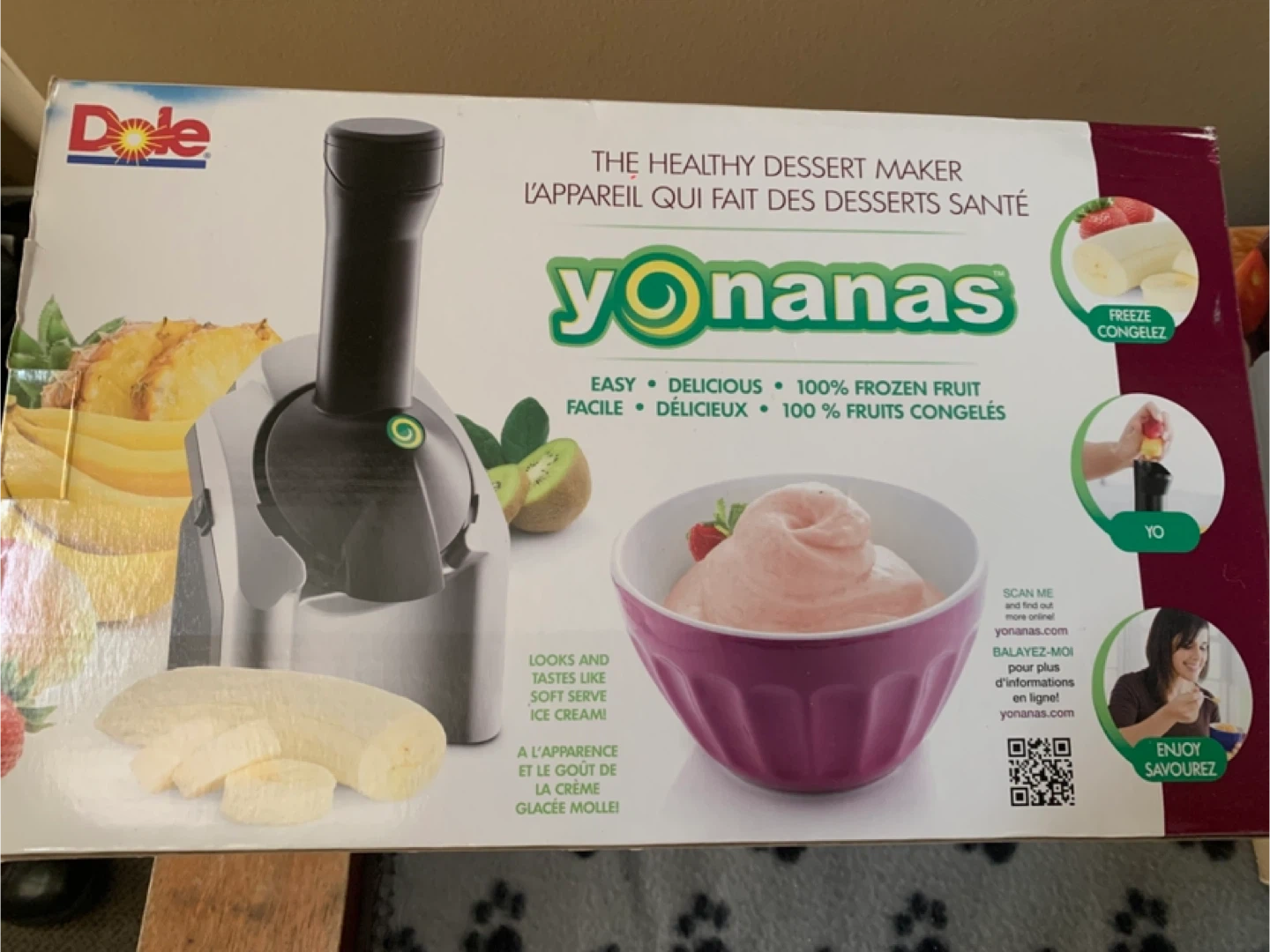 48Making healthy desserts is easy with the Dole Yonanas machine! It turns 100% frozen fruit into a soft serve ice cream alternative. It looks and tastes like soft serve ice cream! Pick up in west galt. Smoke free pet friendly home. $20