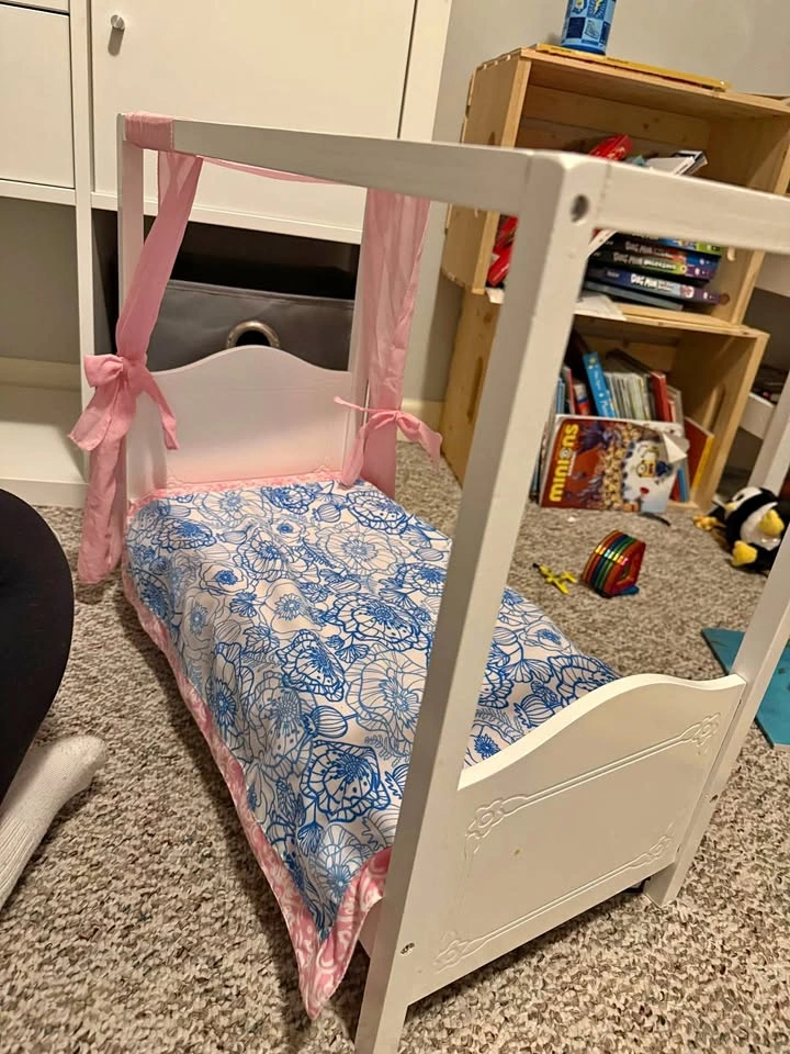 OG doll bed. Fits American doll. Wooden doll bed. We love this bed, but have grown own of the doll phase