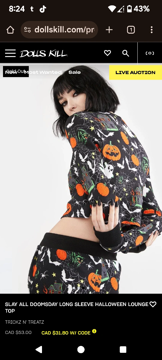 118Dolls kill and Trickz N' Treatz Waffle knit Halloween lounge top New size 1X Because you won't wanna take this off. This long sleeve halloween themed lounge top has pumpkins, spiderwebs, ghosts and more printed all over. Lounge or pyjama top Pickup in Hamilton anytime Pickup Toronto Union station (only out that way once or twice a month) Shipping available at buyers expense Originally $53 CAD + Shipping and customs