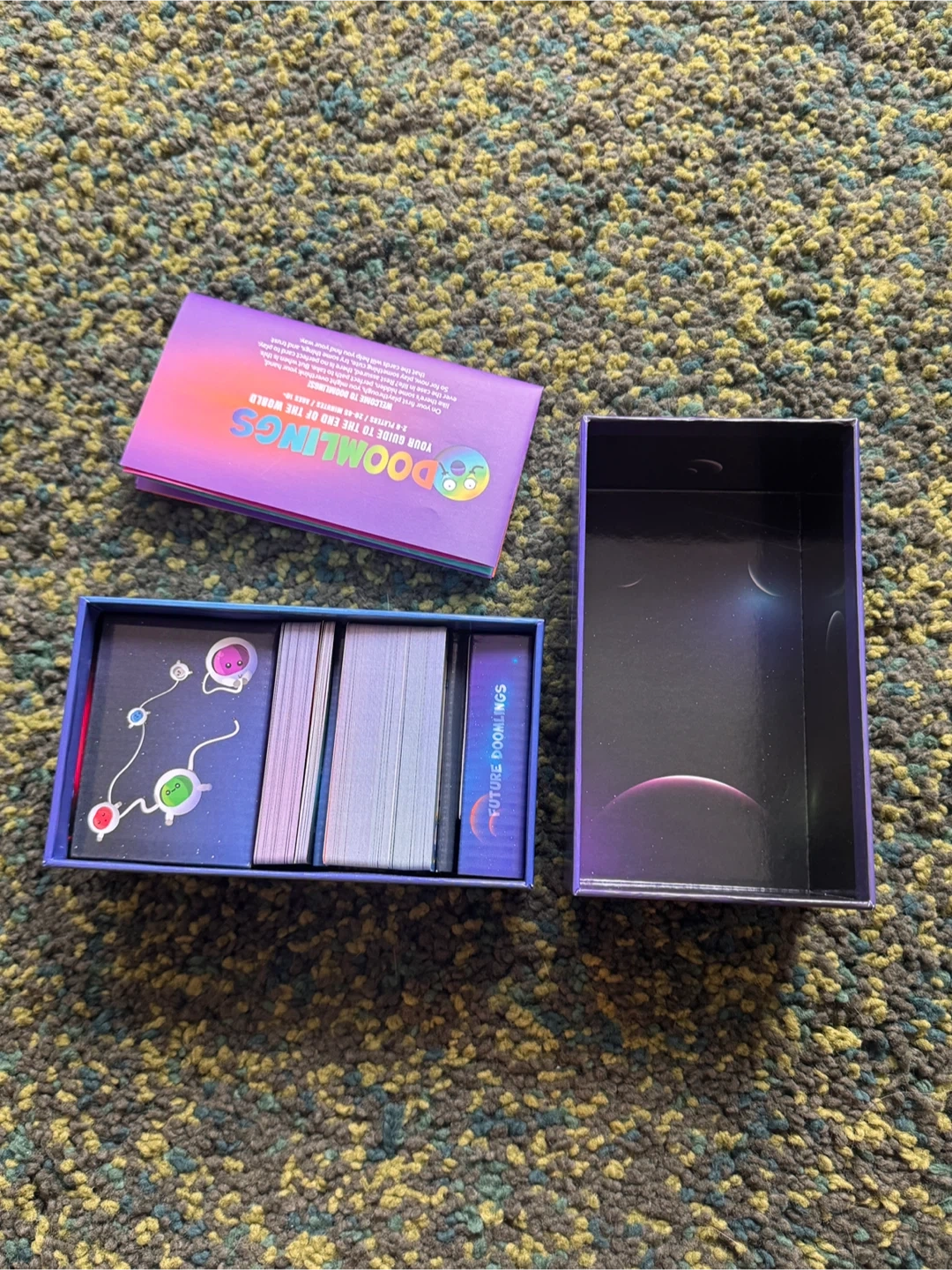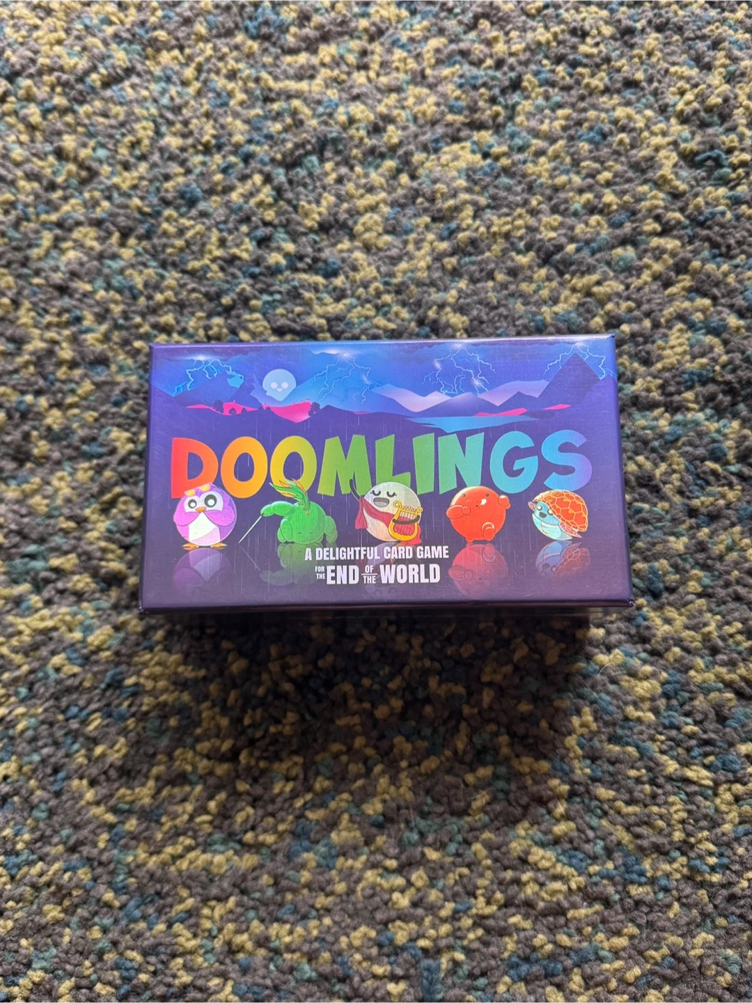 Selling a Doomlings card game! It's a delightful card game about the end of the world. For 2-6 players, ages 8+. Created by Justus and Andrew Meyer. Opened but never played