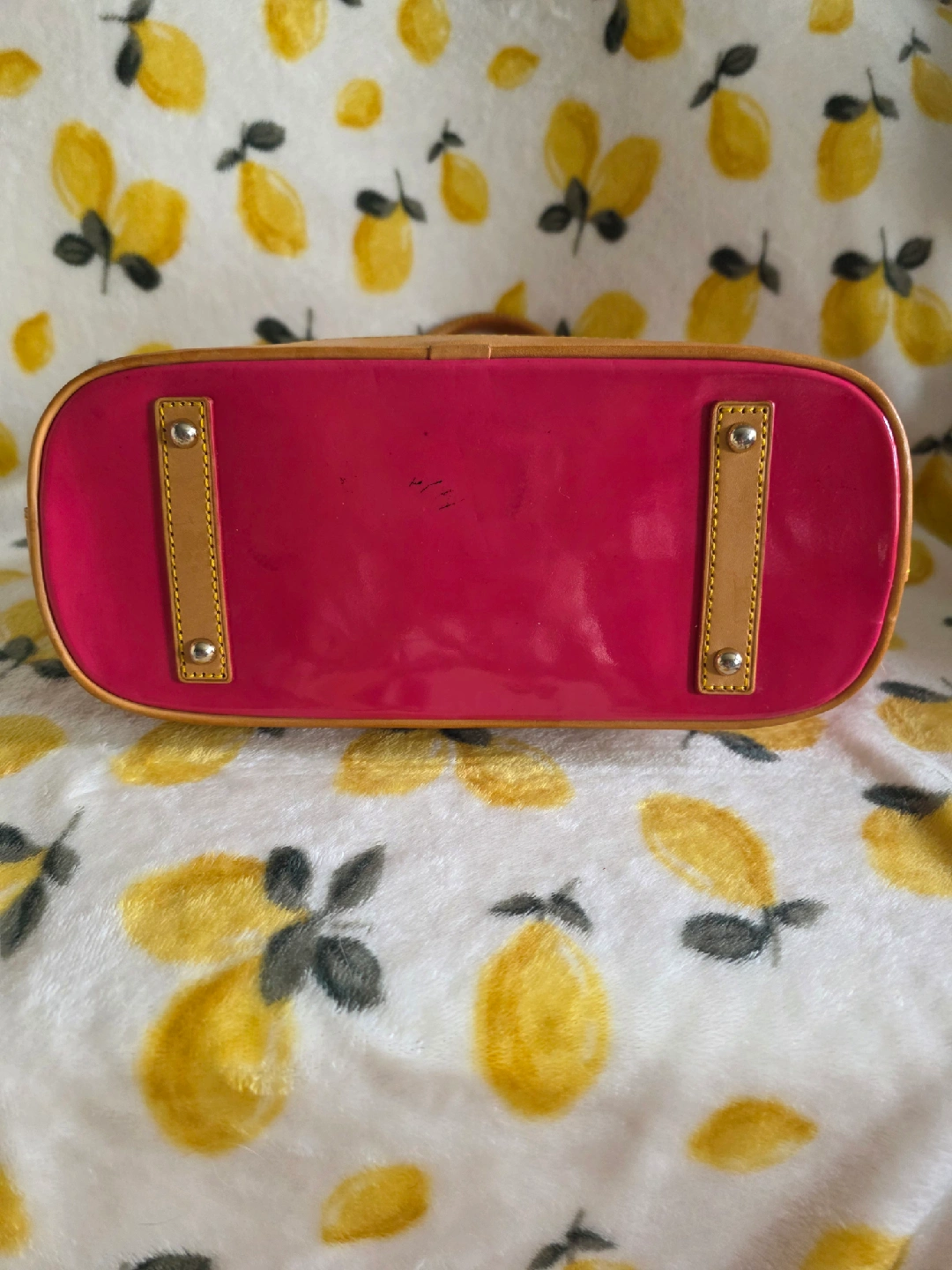 ⭕️ Authentic Dooney and Bourke ⭕️ Patent leather ⭕️ Preloved but still nice condition (see photos for imperfections) ⭕️ Hot pink colour ⭕️ Spacious inside ⭕️ Has a key holder hook inside ⭕️ No tears, marks, or peelings on the handles ⭕️ This is a handbag, no crossbody strap 📍 Meet up in Kingsway Mall or at Purolator store in 11220 104 Ave. NW Edmonton. Thanks for dropping by! 👍