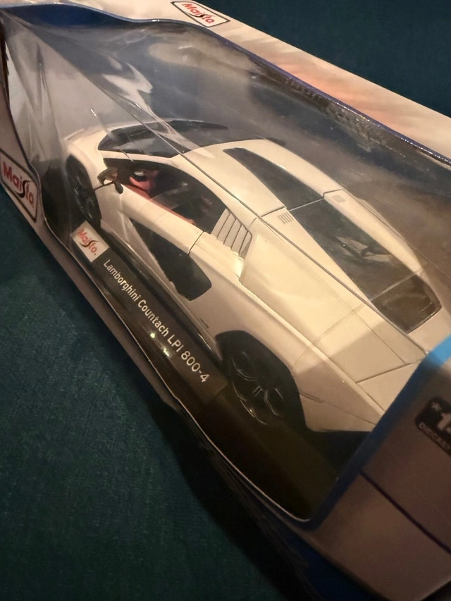 This is a new Maisto Lamborghini Countach LPI 800-4 Special Edition diecast model car in its original packaging, a fantastic addition to any collection. The 1:18 scale model showcases the sleek design of the iconic Lamborghini. It's a great display piece and a must-have for car enthusiasts! If the ad is live, yes, it's still available!
