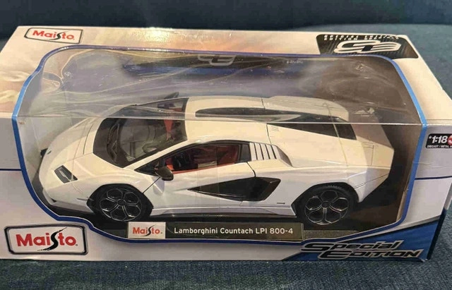 This is a new Maisto Lamborghini Countach LPI 800-4 Special Edition diecast model car in its original packaging, a fantastic addition to any collection. The 1:18 scale model showcases the sleek design of the iconic Lamborghini. It's a great display piece and a must-have for car enthusiasts! If the ad is live, yes, it's still available!