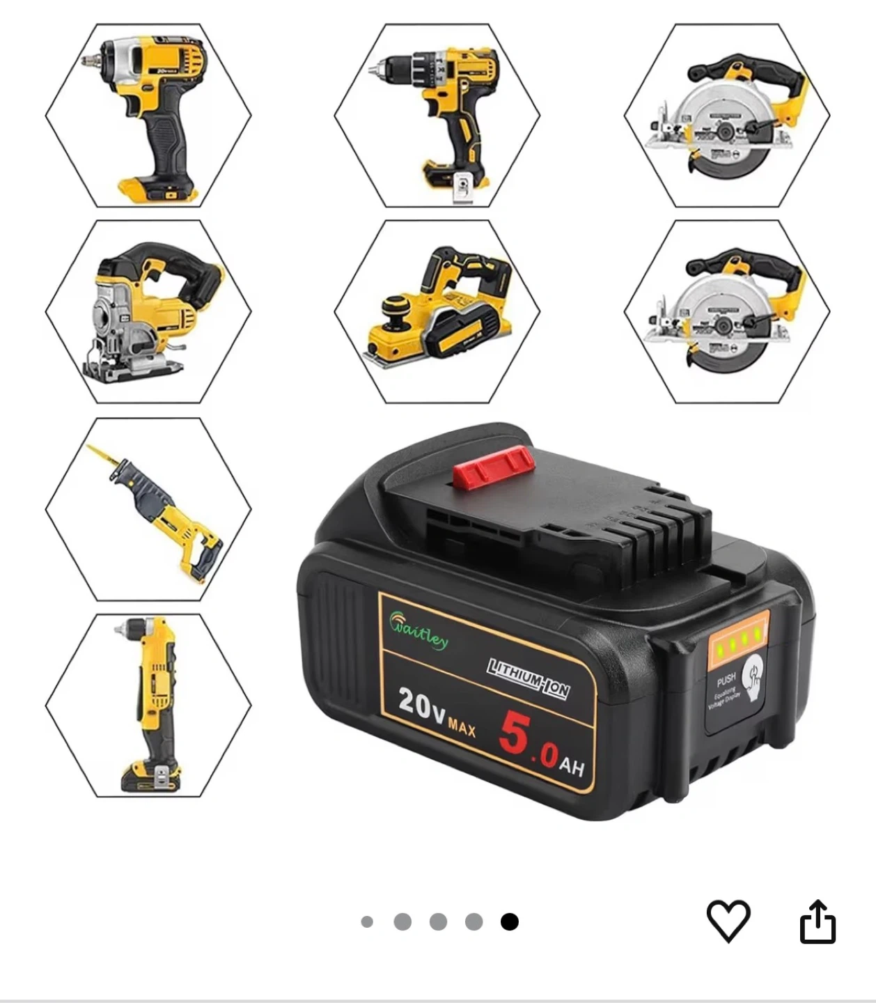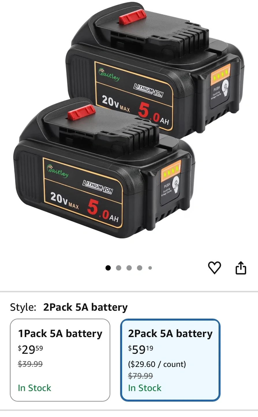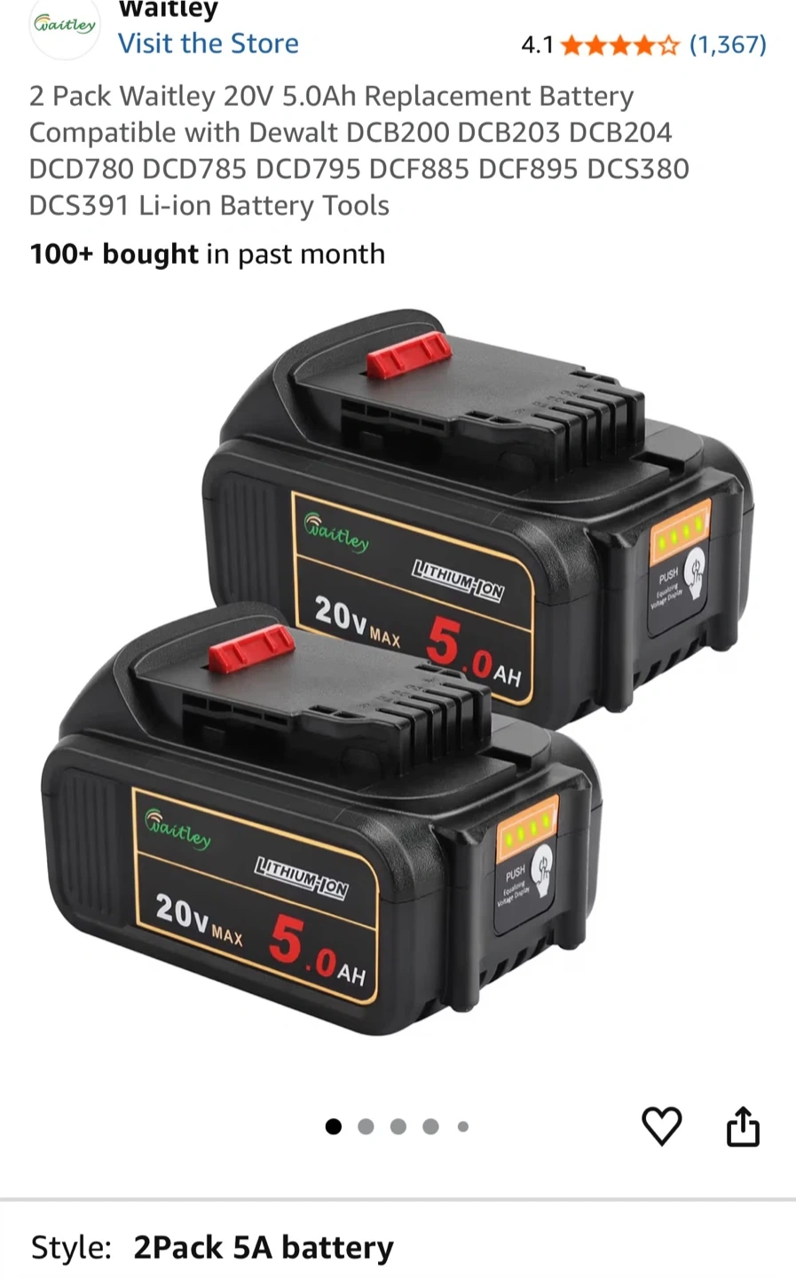 Waitley 20V 5.0Ah Lithium-Ion Replacement Batteries dewalt tools