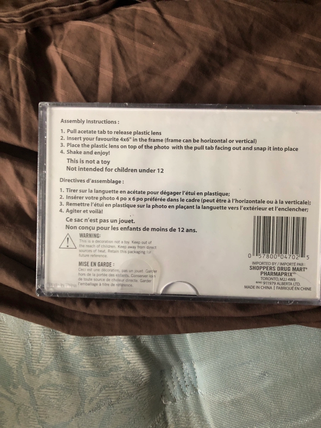 I'm selling a 4x6" picture frame It comes with assembly instructions, including how to insert your favourite 4x6" photo. The frame can be horizontal or vertical. Shake and enjoy! Still in its original plastic