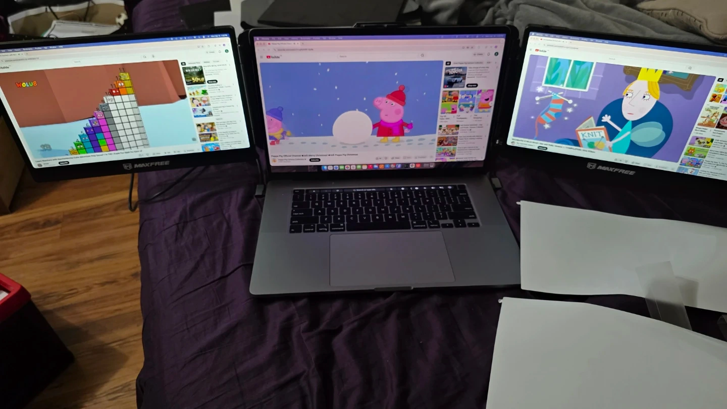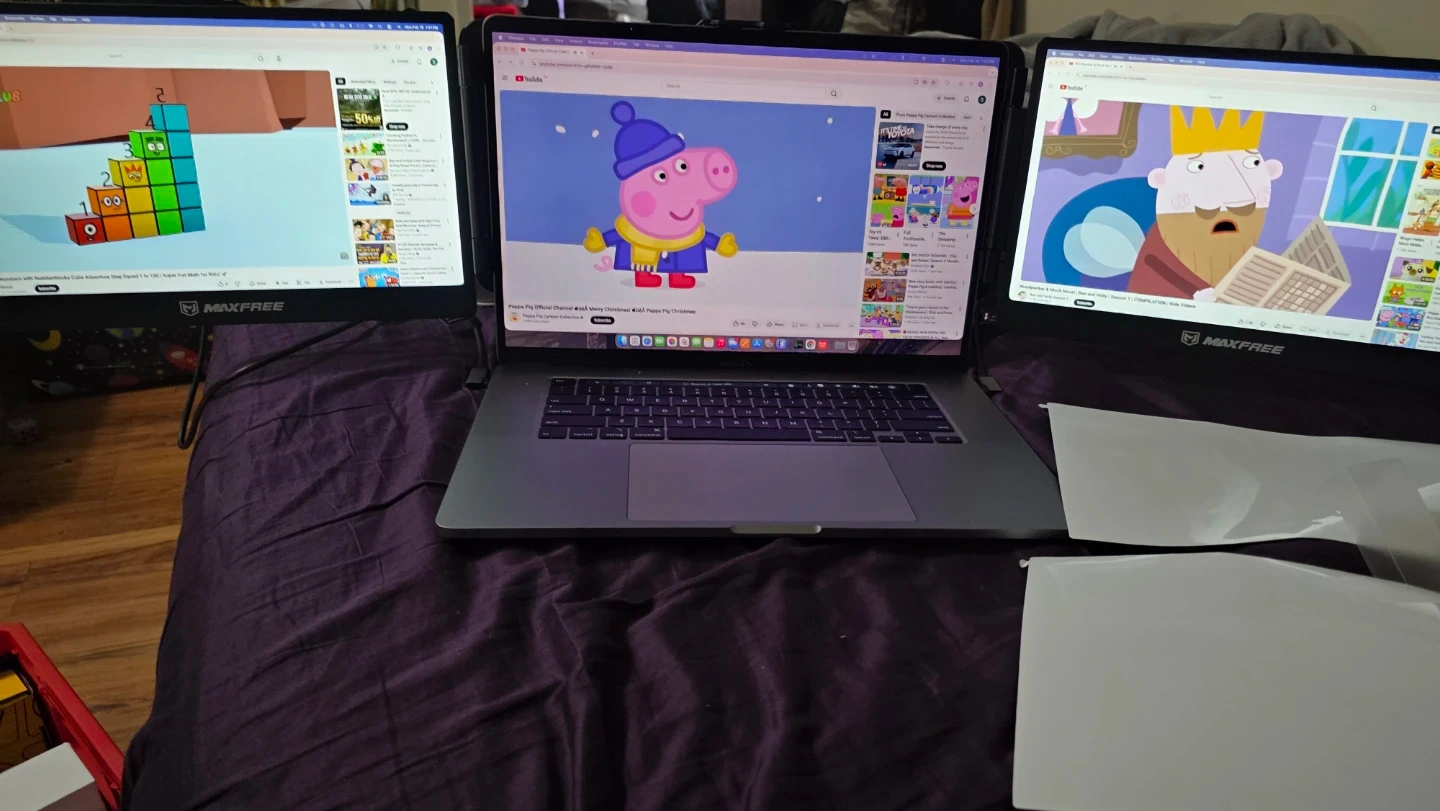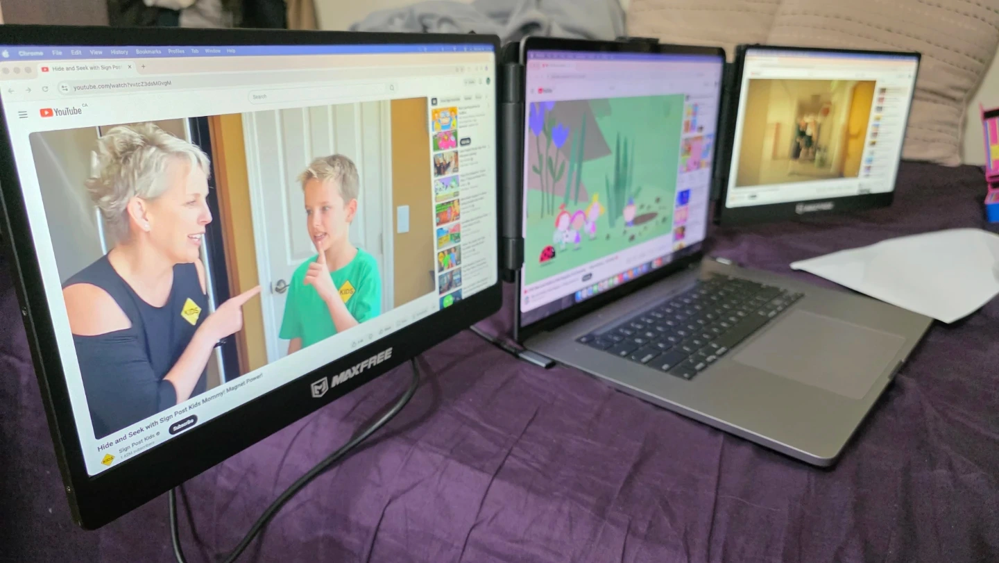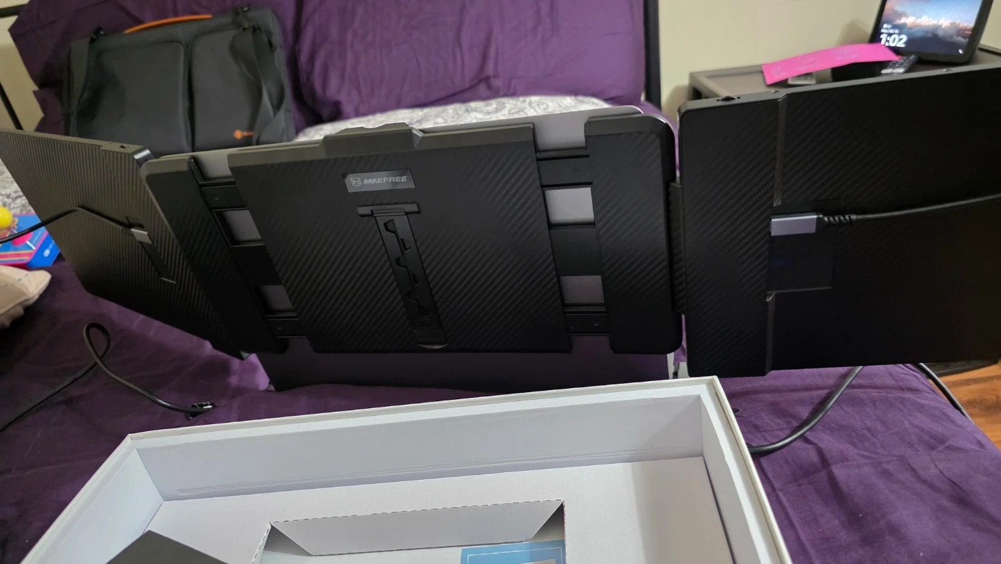 Expand your laptop's screen real estate with this MAXFREE S2 Tri Screen extender. It's a 14-inch portable dual screen device. Works great for multitasking!