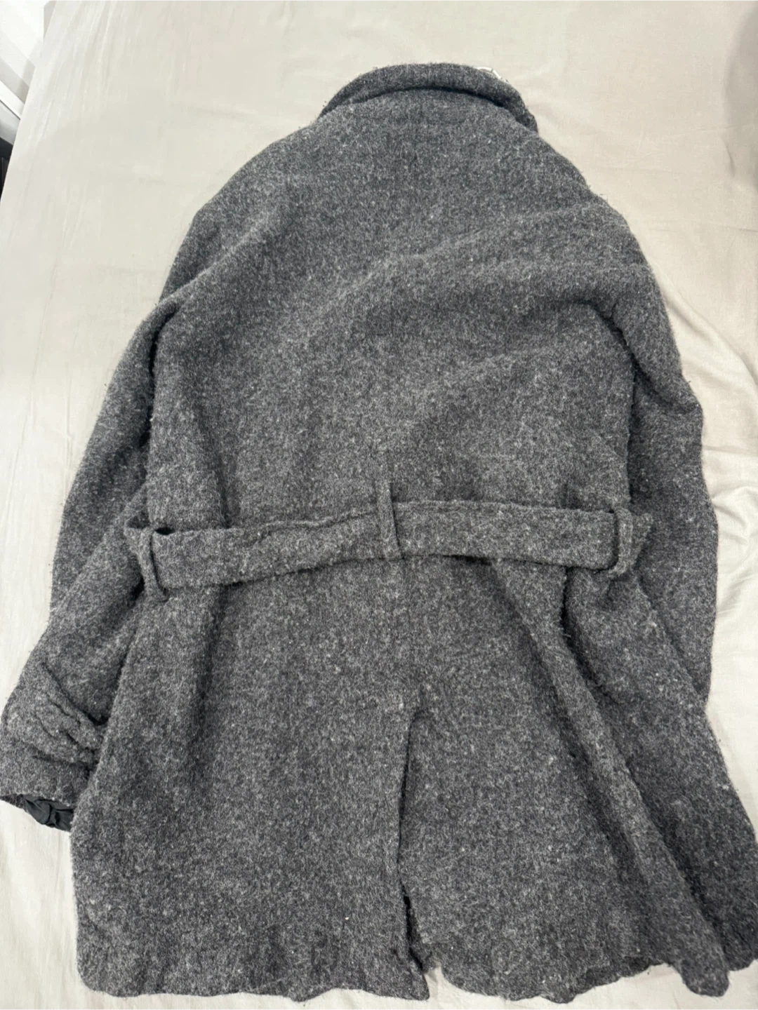 This is a Comme des Garçons Homme Deux double-breasted peacoat. It's made of a boiled wool material. The size is S.