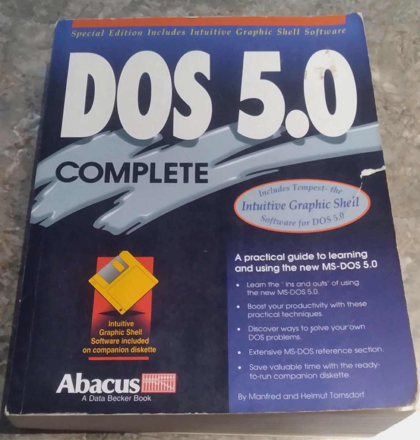 Selling a copy of "DOS 5.0 Complete" by Abacus, A Data Becker Book This special edition includes Intuitive Graphic Shell Software on a companion diskette. It's a practical guide to learning and using the new MS-DOS 5.0, with tips to boost productivity and solve DOS problems. It also has an extensive MS-DOS reference section