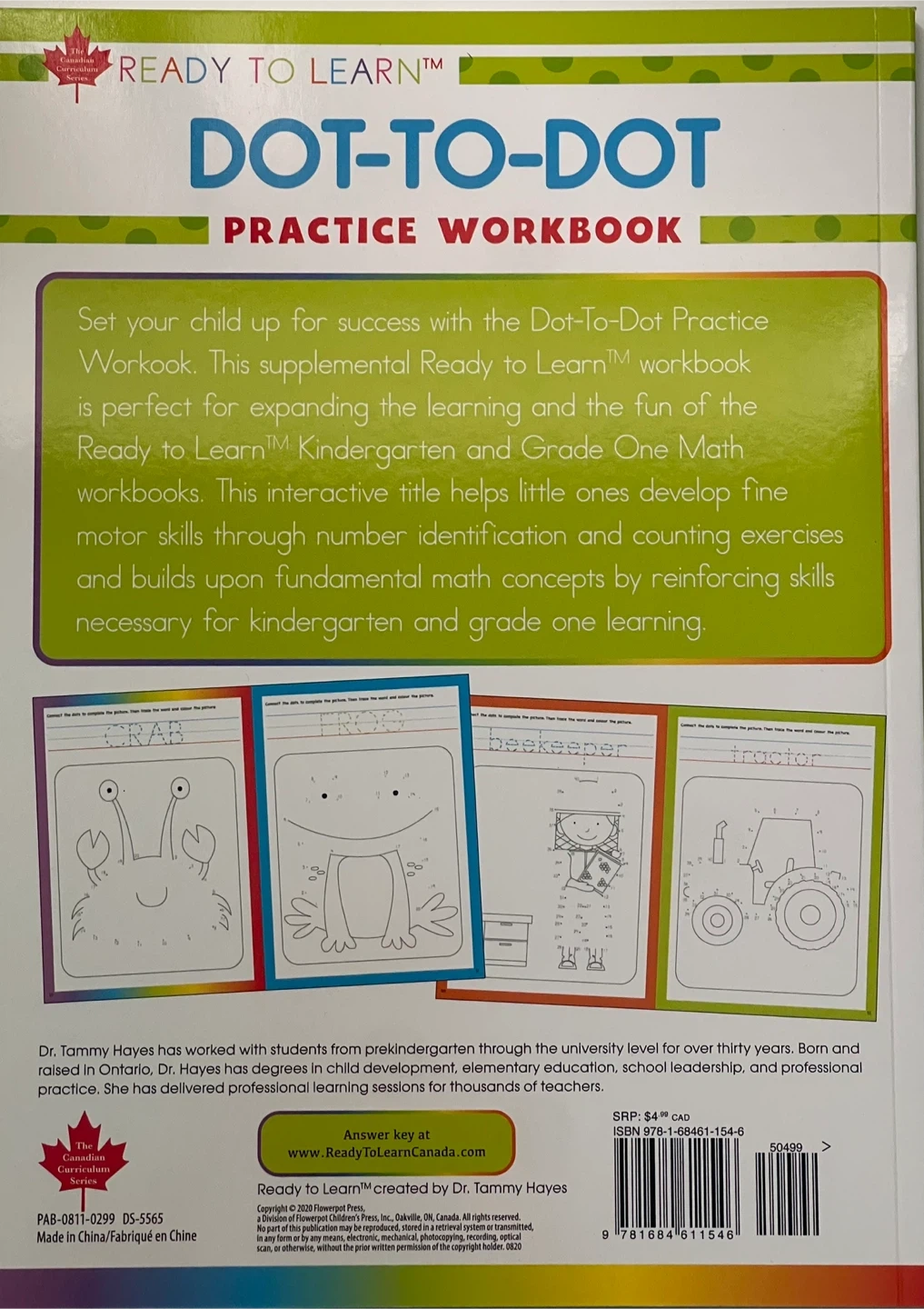10This is a Ready to Learn Dot-to-Dot practice workbook. It's perfect for supplementing learning and fun for kindergarten and grade one math workbooks. This interactive title helps little ones develop fine motor skills through number identification and counting exercises and builds upon fundamental math concepts by reinforcing skills necessary for kindergarten and grade one learning