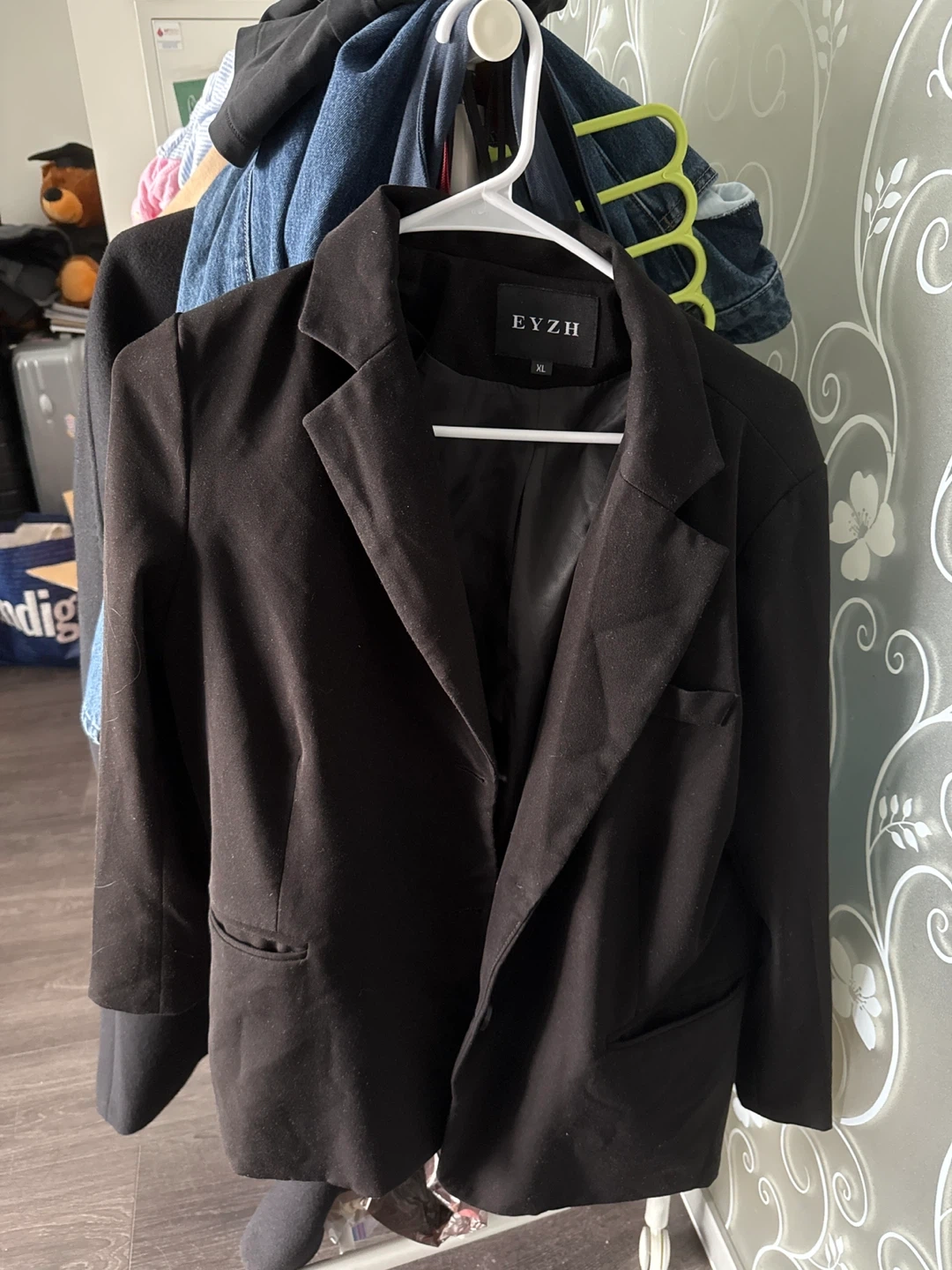 Giving away a stylish black blazer! It's a great addition to any wardrobe and can be dressed up or down. Perfect for layering or wearing on its own