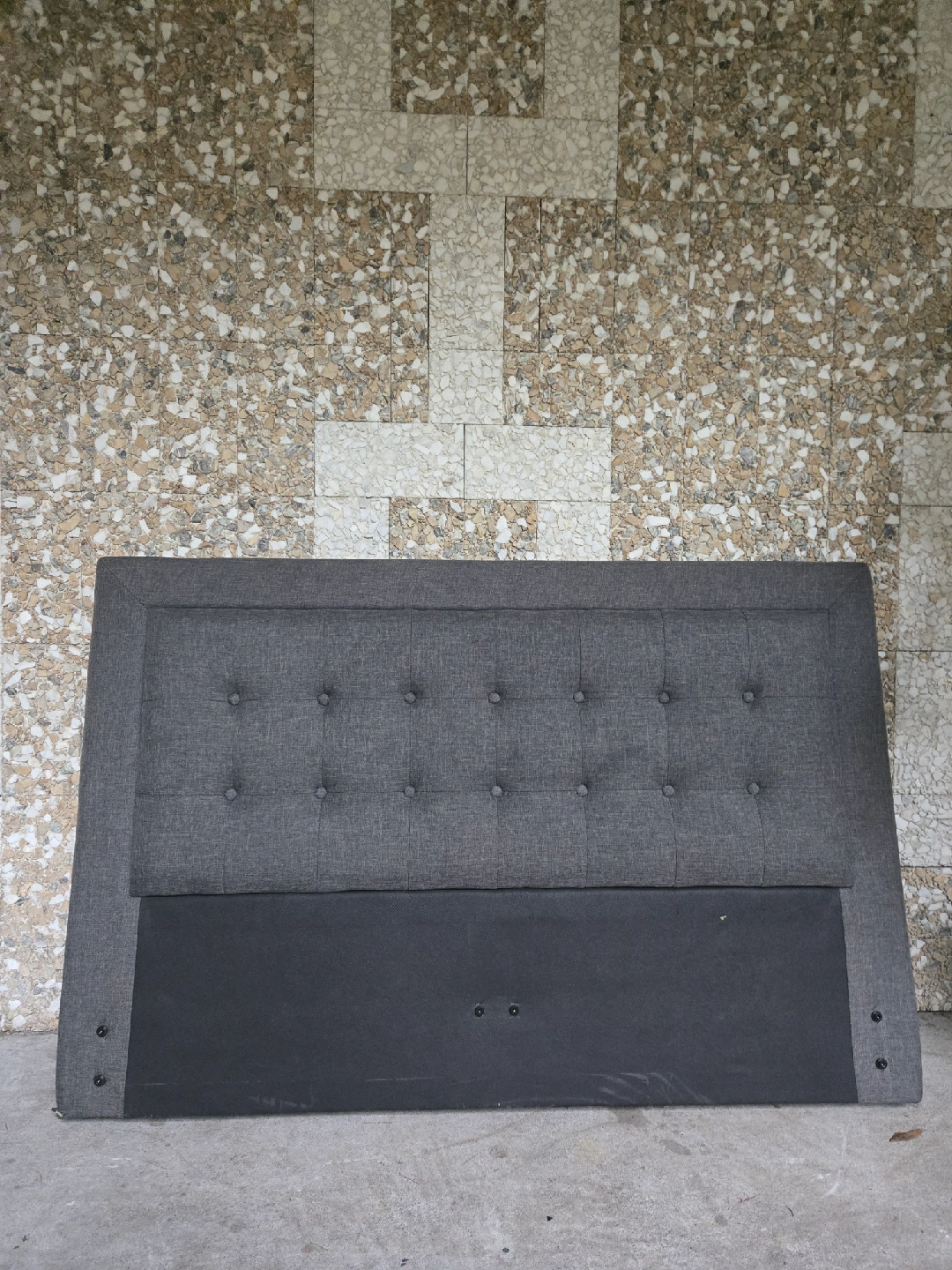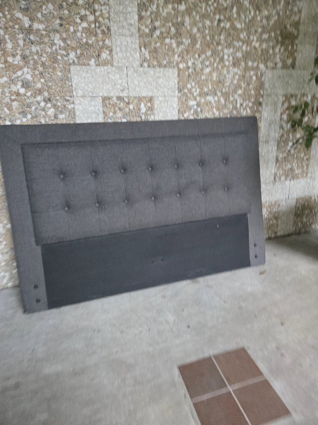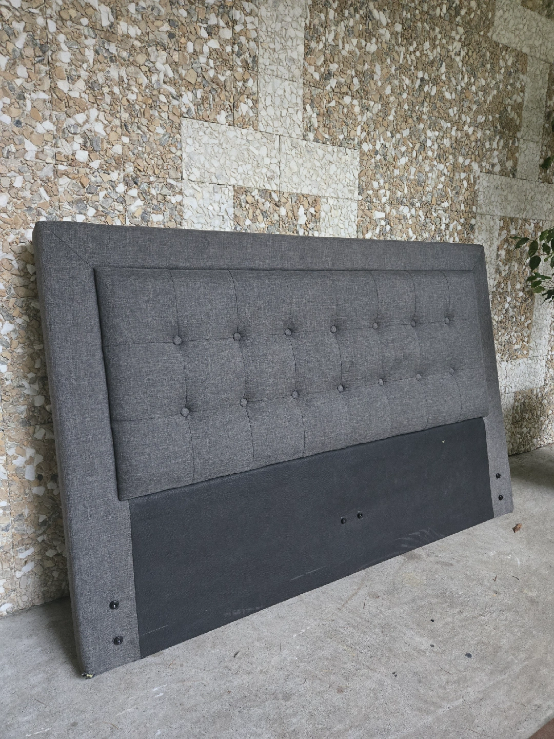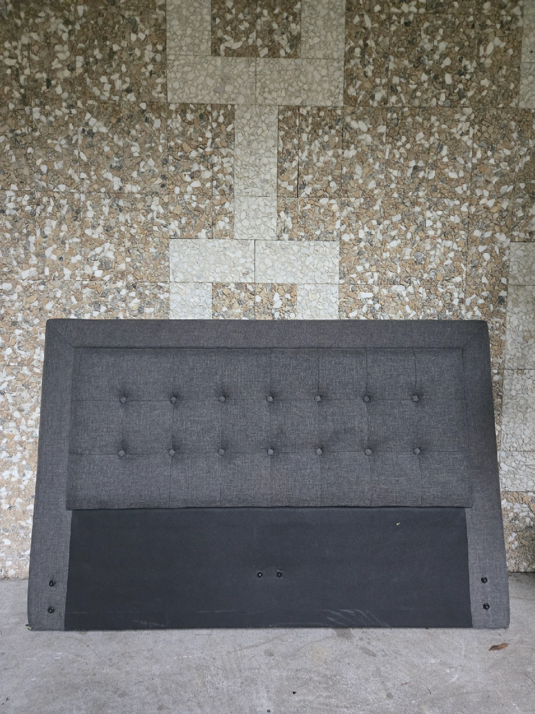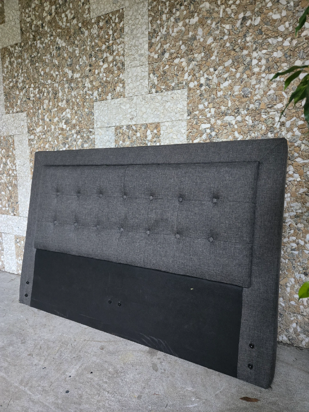 Double Size Grey Bedframe With Headboard With Footboard And Side Rails 56 3/4 inch width 37 inch height 4 1/2 inch depth Delivery Available Comes with fabric sidewalls and headboard and metal legs. Pick up in downtown Vancouver or delivery may be arranged for a reasonable fee. Tags: modern Contemporary chic designer walnut rosewood mahogany cherry nightstands bedside tables side tables end tables living room bedroom wardrobe dresser cb2 eq3 west elm pottery barn crate and barrel structube article Moe's Scandesign rove concept westendtrends furniture vanvaluevintage