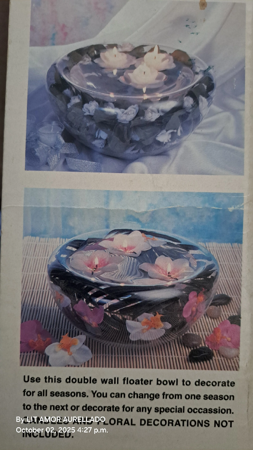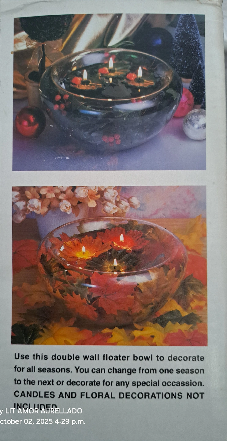 Lightscapes 10" double Wall Floater Bowl, use to decorate all seasons.