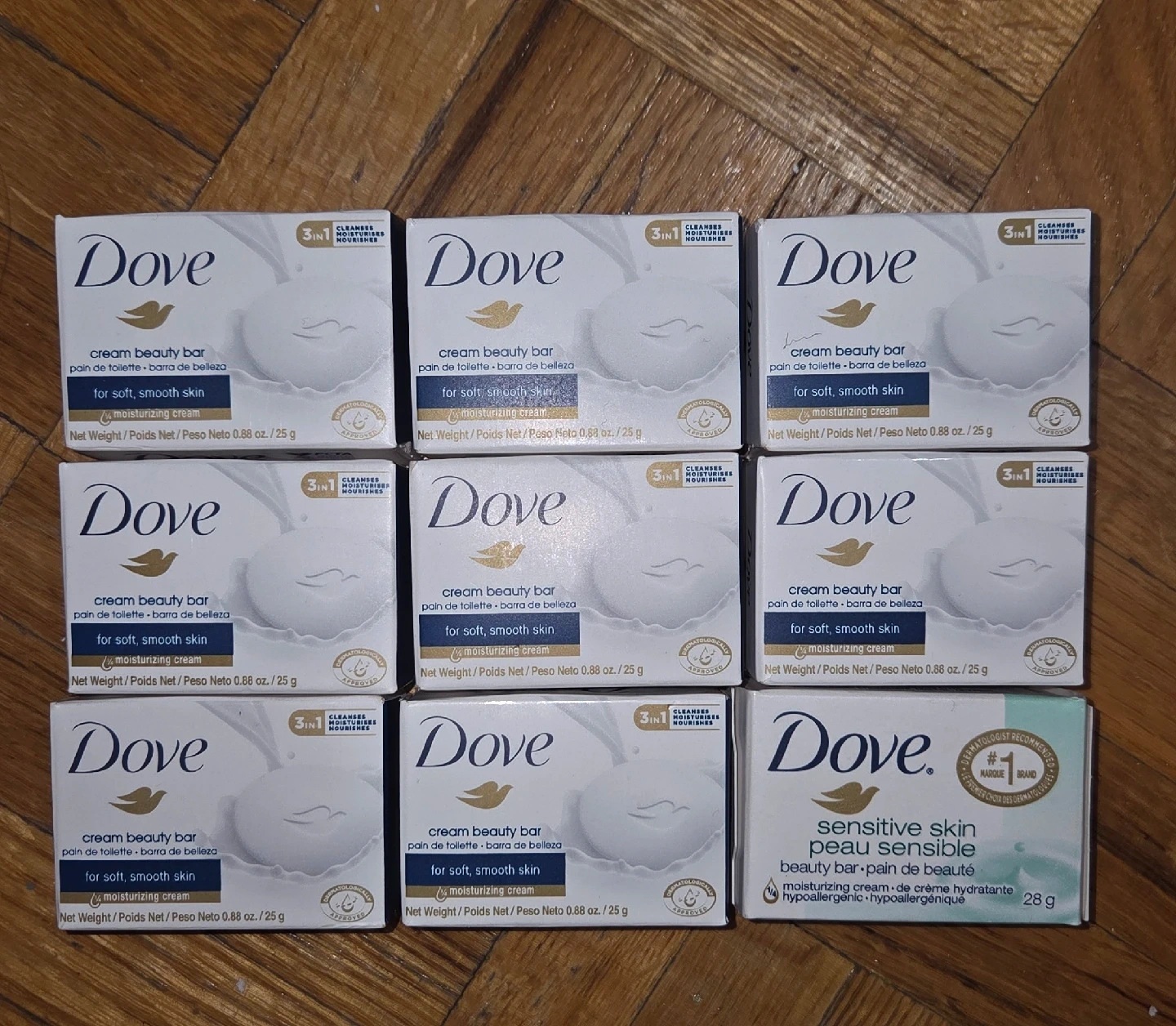 3148 Dove mini bar soap 25g each 1 Dove mini sensitive bar soap 28g all 9 for $5