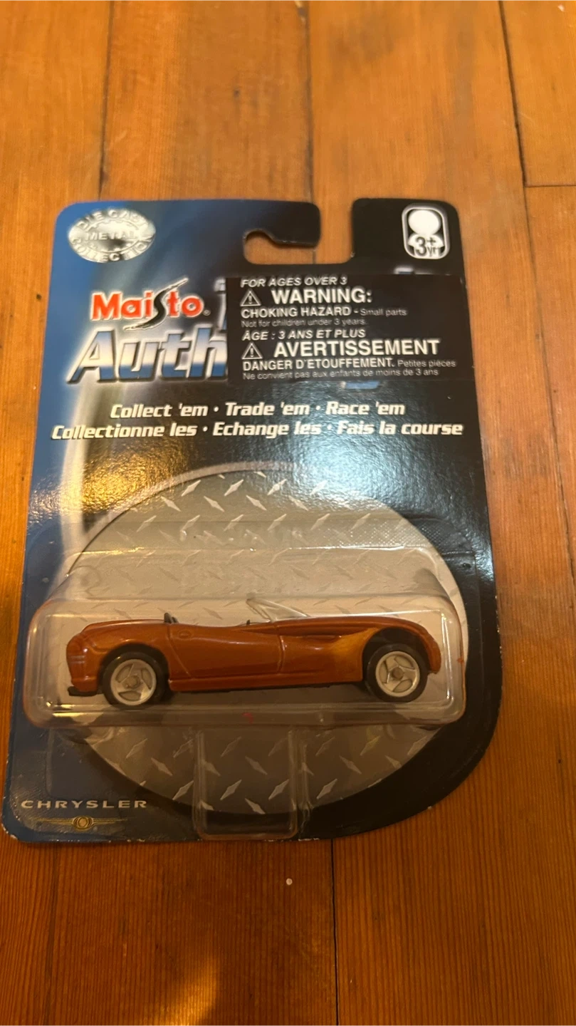 Factory sealed in original packaging. Early-2000s Maisto release with a clean copper/orange finish and classic Prowler styling. A nice collectible for die-cast fans, Chrysler collectors, or anyone who enjoys carded vintage pieces.