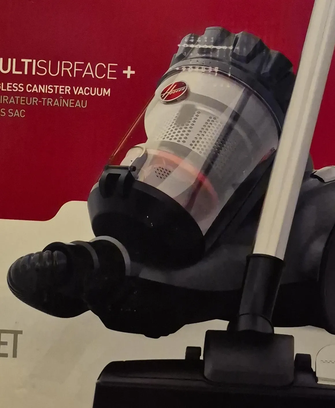 Selling a Hoover MultiSurface+ bagless canister vacuum! It's perfect for all your cleaning needs
