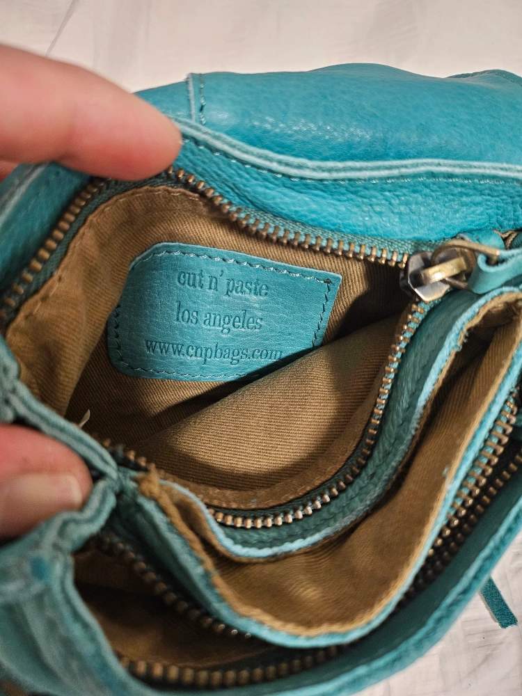 Cut 'n Paste Teal Leather Crossbody Bag