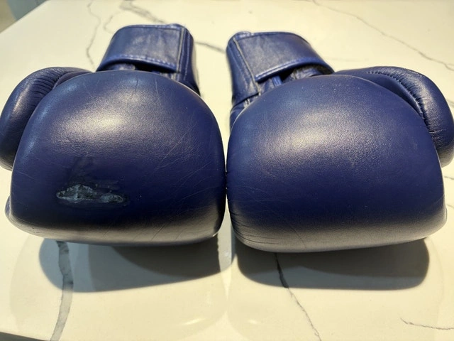 Original Fairtex boxing gloves, 16 oz Hand made in Thailand, genuine leather Used, good overall condition. There is one cosmetic scuff on the leather (see photos), leather is intact – no holes, no tears. Padding is still solid and gloves are fully usable. Perfect for training, sparring, boxing or MMA.