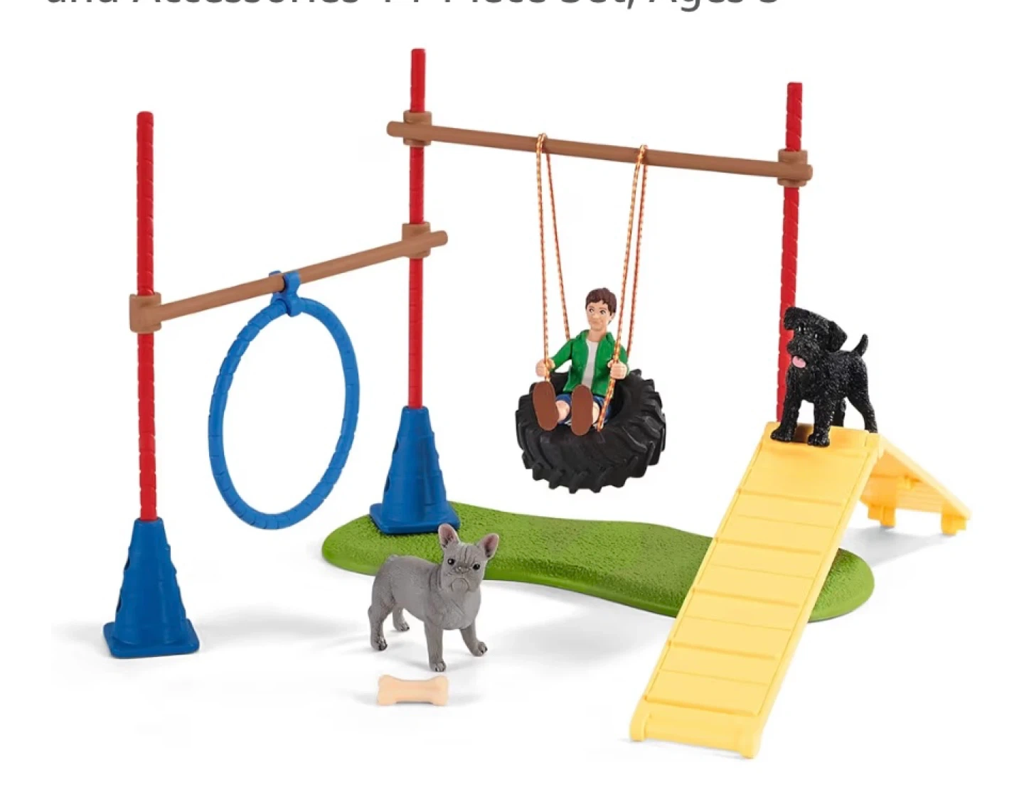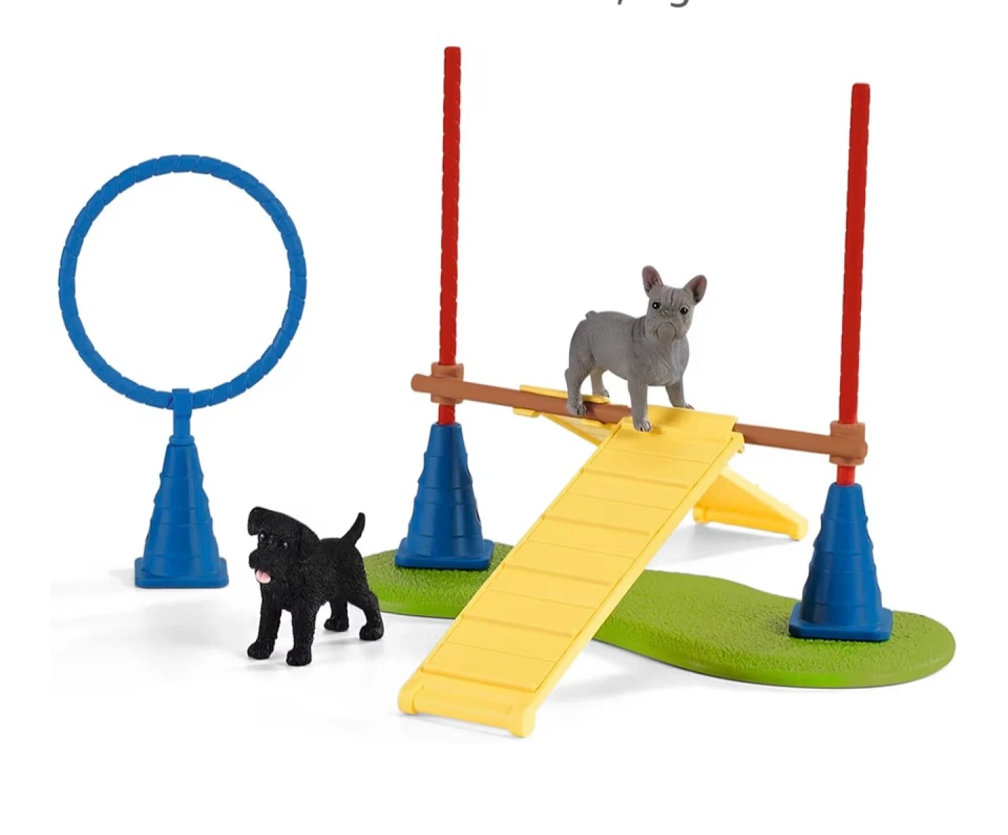 This Schleich Farm World playset includes a figure, two dogs, and an agility course. It's a 14-piece set designed for kids ages 3 and up. Great for imaginative play with your little ones!