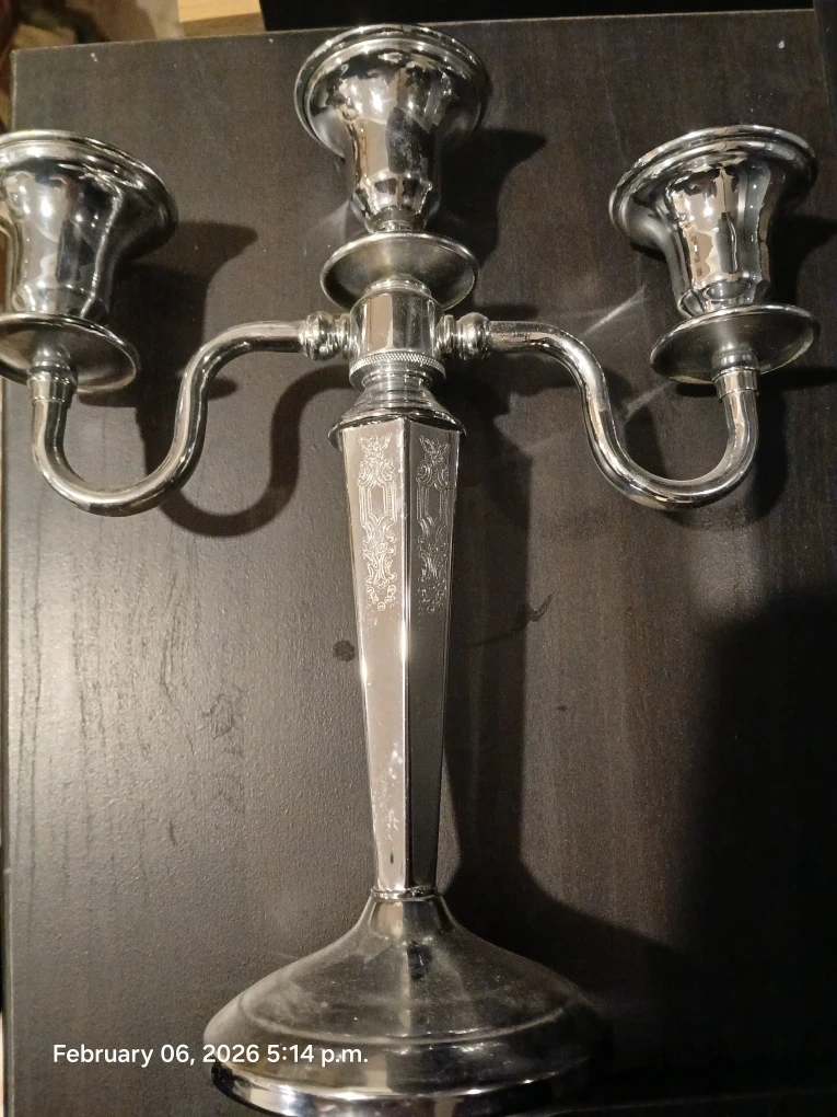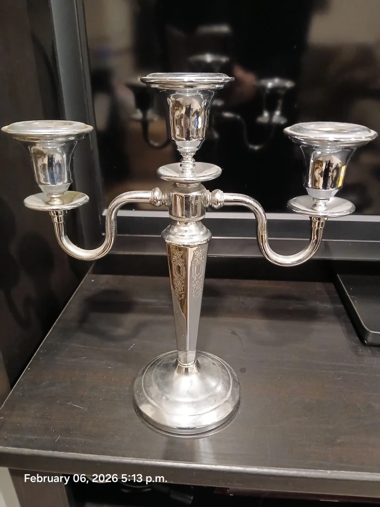 π Silver Tone 3-Arm Candelabra