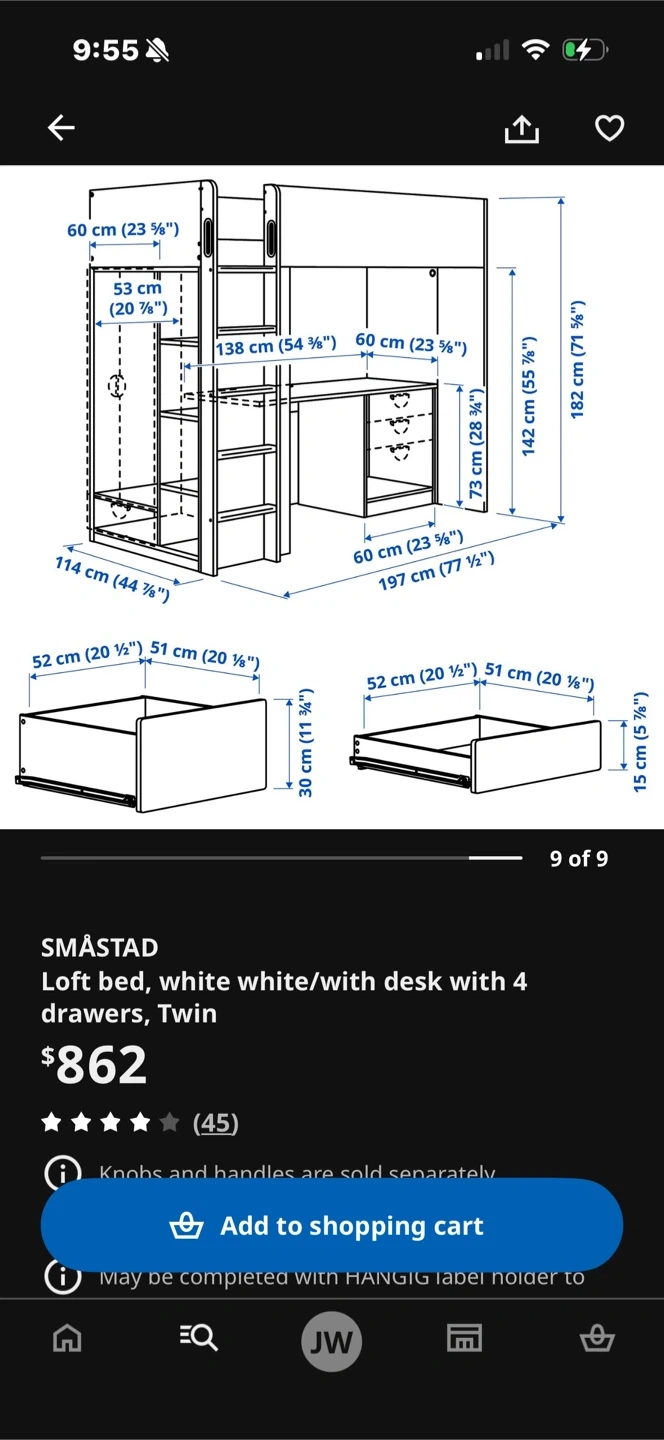 IKEA SMÅSTAD Loft Bed with Desk and 4 Drawers