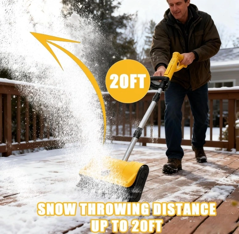 This snow shovel is compatible with Dewalt 20V batteries (battery and charger not included). Equipped with a brushless motor, this snow thrower clears snow with a 12.8-inch clearing width, 9.7-inch clearing depth, and throws snow up to 20 feet. It delivers reliable performance even in extreme cold as low as -4°F (-20°C). Featuring a ±30 degree adjustable chute, this electric snow shovel allows 30-degree rotation left and right for easy control over snow direction. Quickly clear snow from driveways, sidewalks, patios, and decks. Weighing only 14.3 lbs, this electric snow shovel is easy to carry and perfect for quickly clearing snow from patios, decks, sidewalks, driveways, pathways, steps, and entrances.