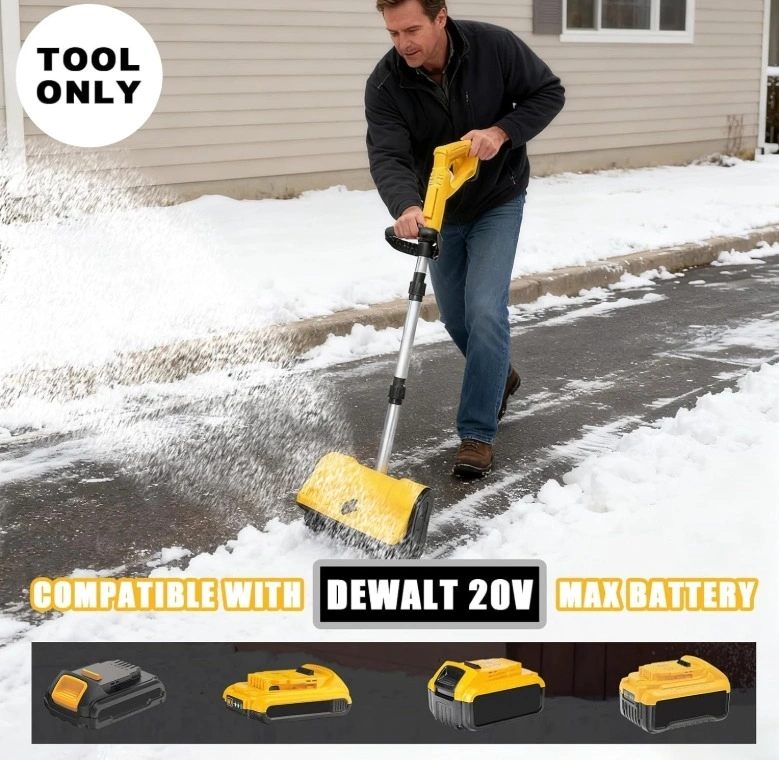 This snow shovel is compatible with Dewalt 20V batteries (battery and charger not included). Equipped with a brushless motor, this snow thrower clears snow with a 12.8-inch clearing width, 9.7-inch clearing depth, and throws snow up to 20 feet. It delivers reliable performance even in extreme cold as low as -4°F (-20°C). Featuring a ±30 degree adjustable chute, this electric snow shovel allows 30-degree rotation left and right for easy control over snow direction. Quickly clear snow from driveways, sidewalks, patios, and decks. Weighing only 14.3 lbs, this electric snow shovel is easy to carry and perfect for quickly clearing snow from patios, decks, sidewalks, driveways, pathways, steps, and entrances.
