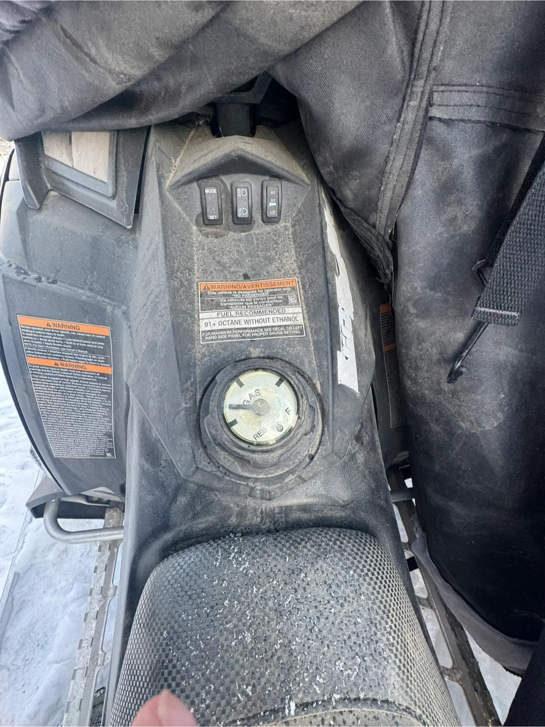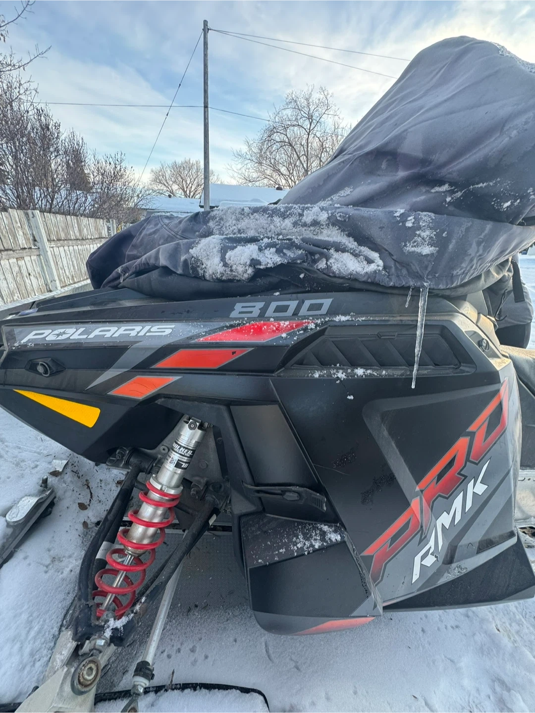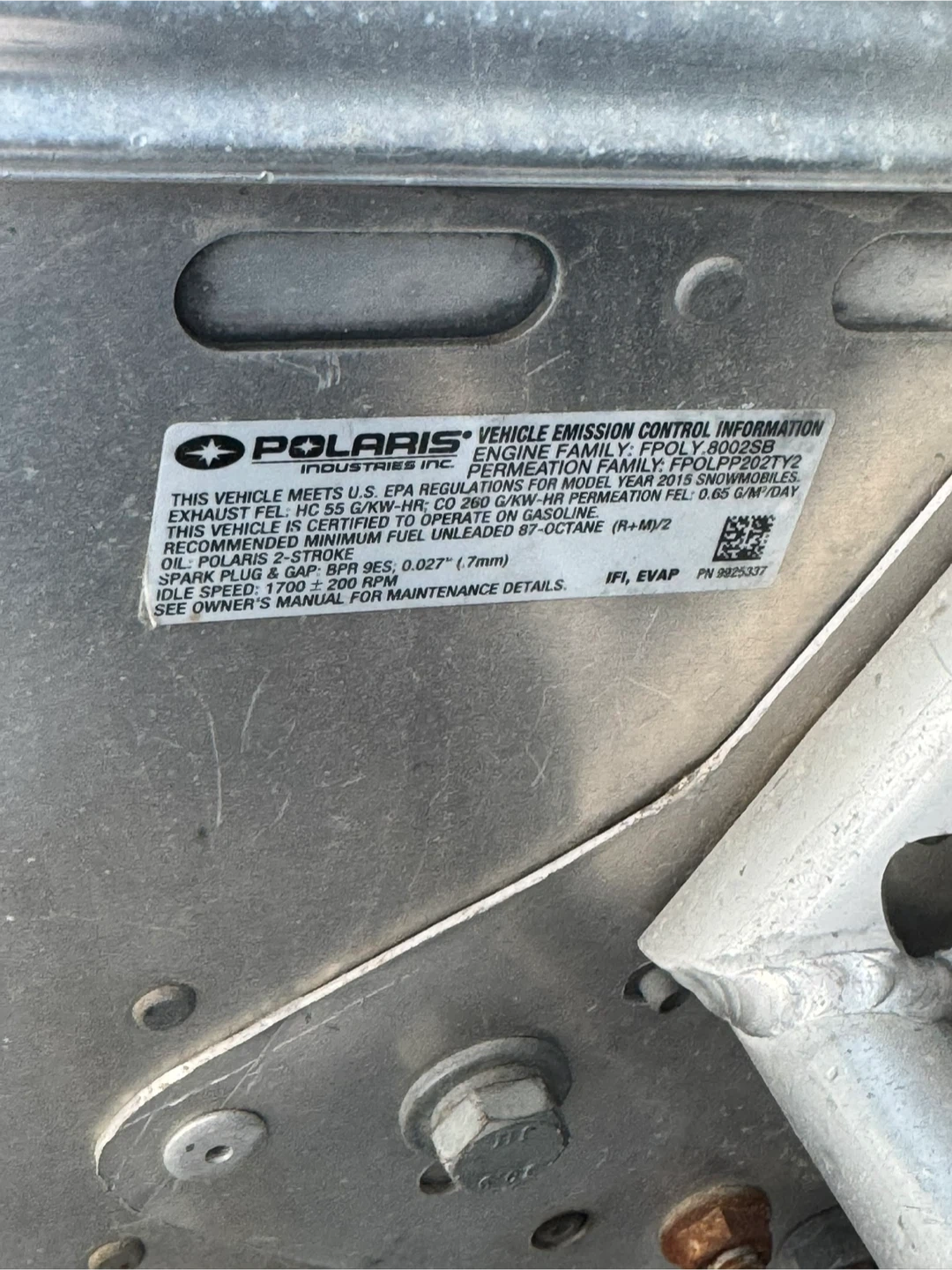 This is a Polaris RMK 800 snowmobile. It's designed for mountain riding. Recommended fuel is 87-octane unleaded gasoline.