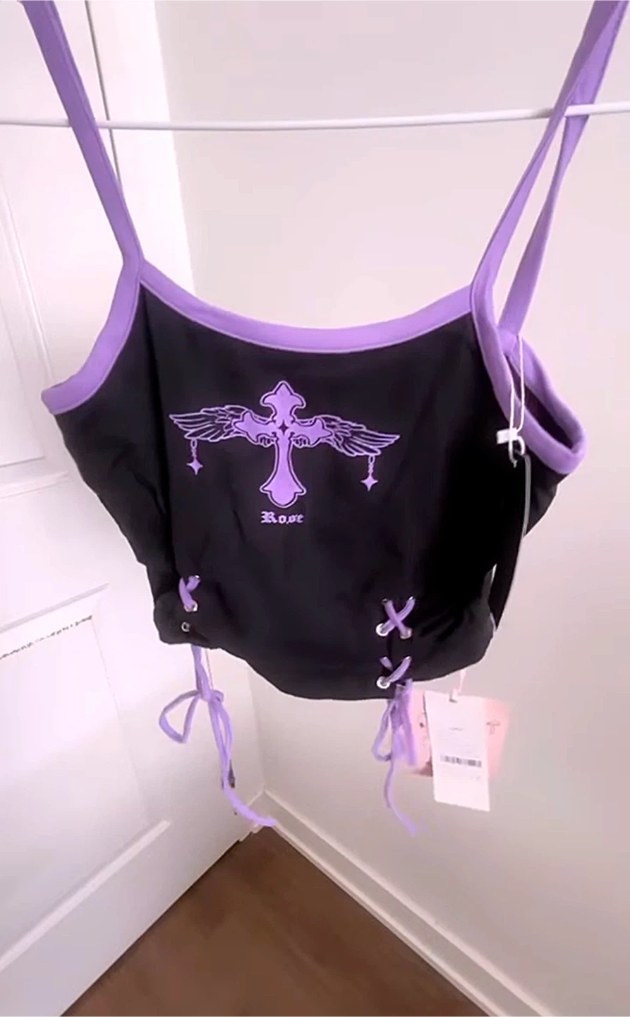 リボンパターンバタフライクロスベルトティアードピンクス Angel Wings Logo Tank Top