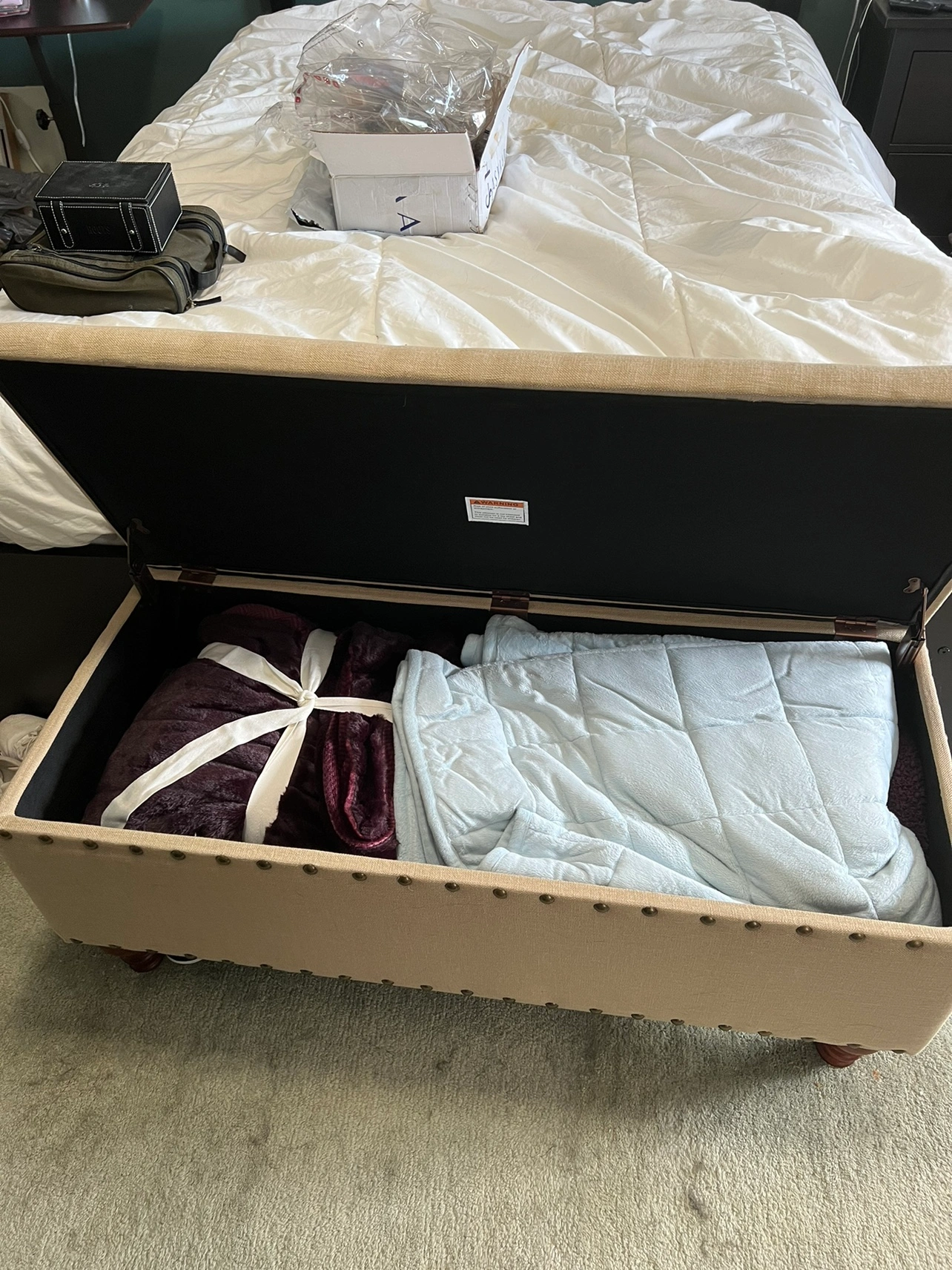 Buy & SellStorage OttomanStorage Ottoman$25Beige storage ottoman with a hinged lid. Perfect for storing blankets and other items.ConditionGoodDimensions3’6” X 1’6” X 1’5”WHERE TO MEETCaledon WestView MapSELLERSeemaSouthfields Village696 reviews0 chats·0 favorites·35 viewsSEND CHAT TO SELLERHi Seema! I’m interested in your listing.Hi Seema! I’m interested in your listing.Get the Karrot app to chatSign In to chat