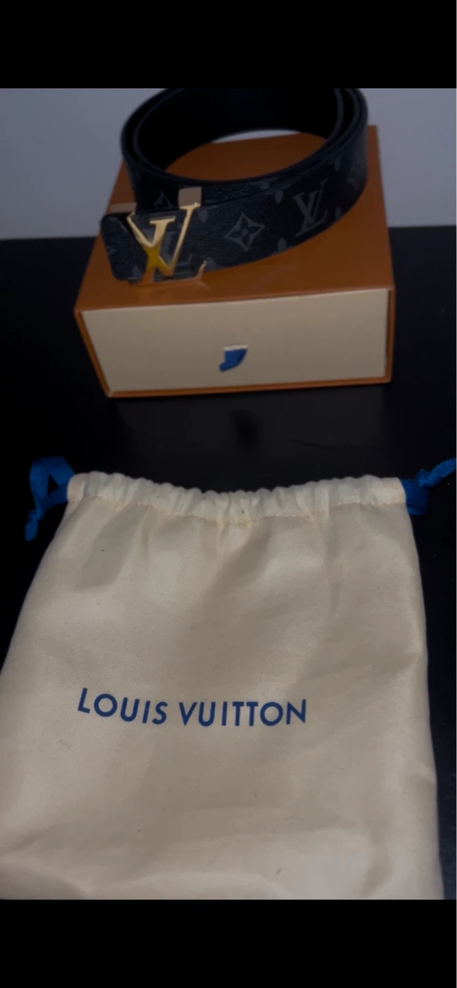 Authentic Louis Vuitton belt with the iconic monogram pattern and a gold-tone LV buckle. Includes original box, dust bag, and shopping bag. It's a statement piece for any fashion enthusiast!