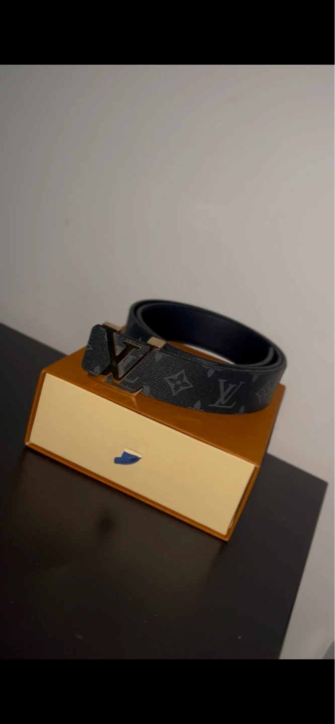 Authentic Louis Vuitton belt with the iconic monogram pattern and a gold-tone LV buckle. Includes original box, dust bag, and shopping bag. It's a statement piece for any fashion enthusiast!