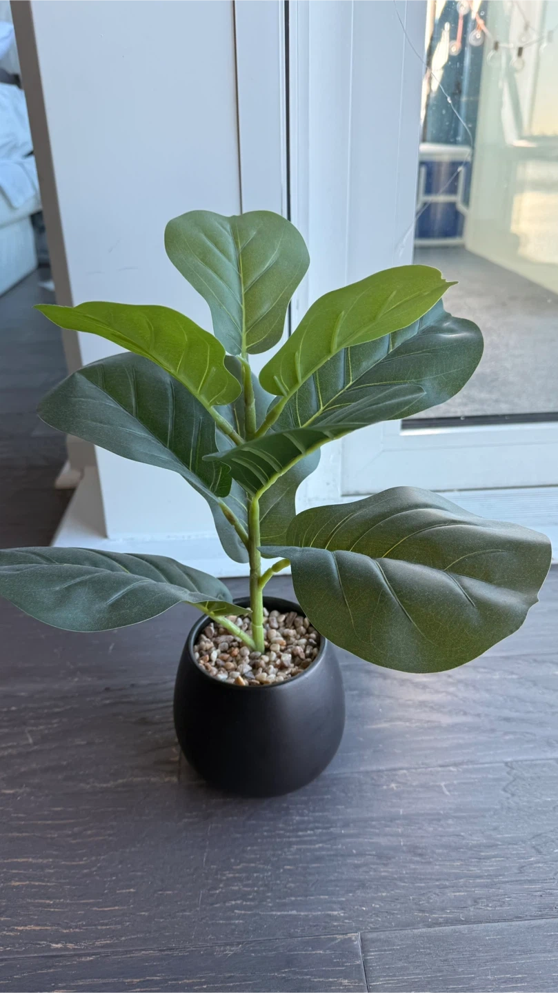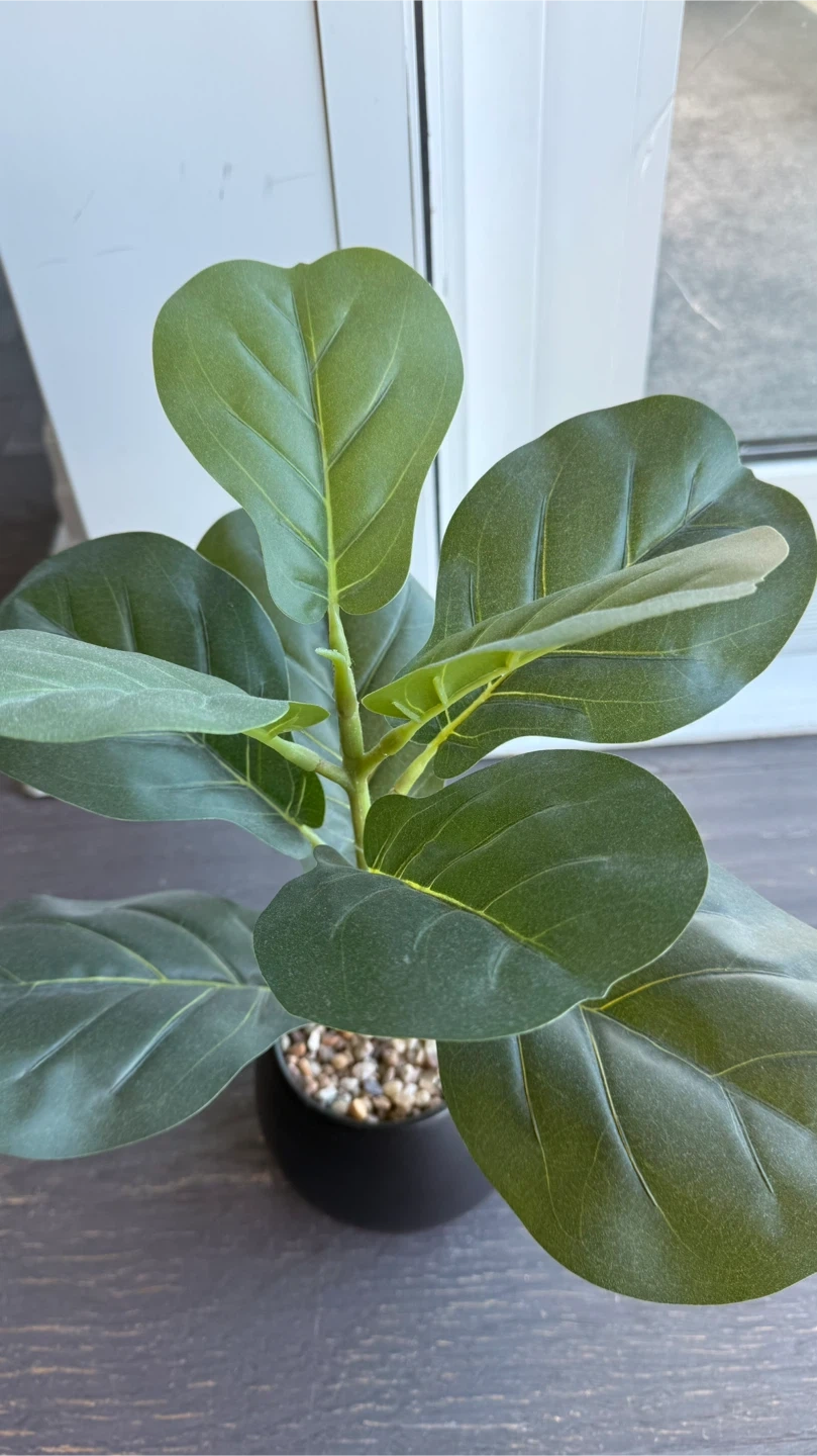 Beautiful, realistic-looking faux fiddle leaf fig in a sleek matte black pot. Adds a touch of greenery to any room — zero maintenance needed! Looks perfect in modern or minimalist spaces.
