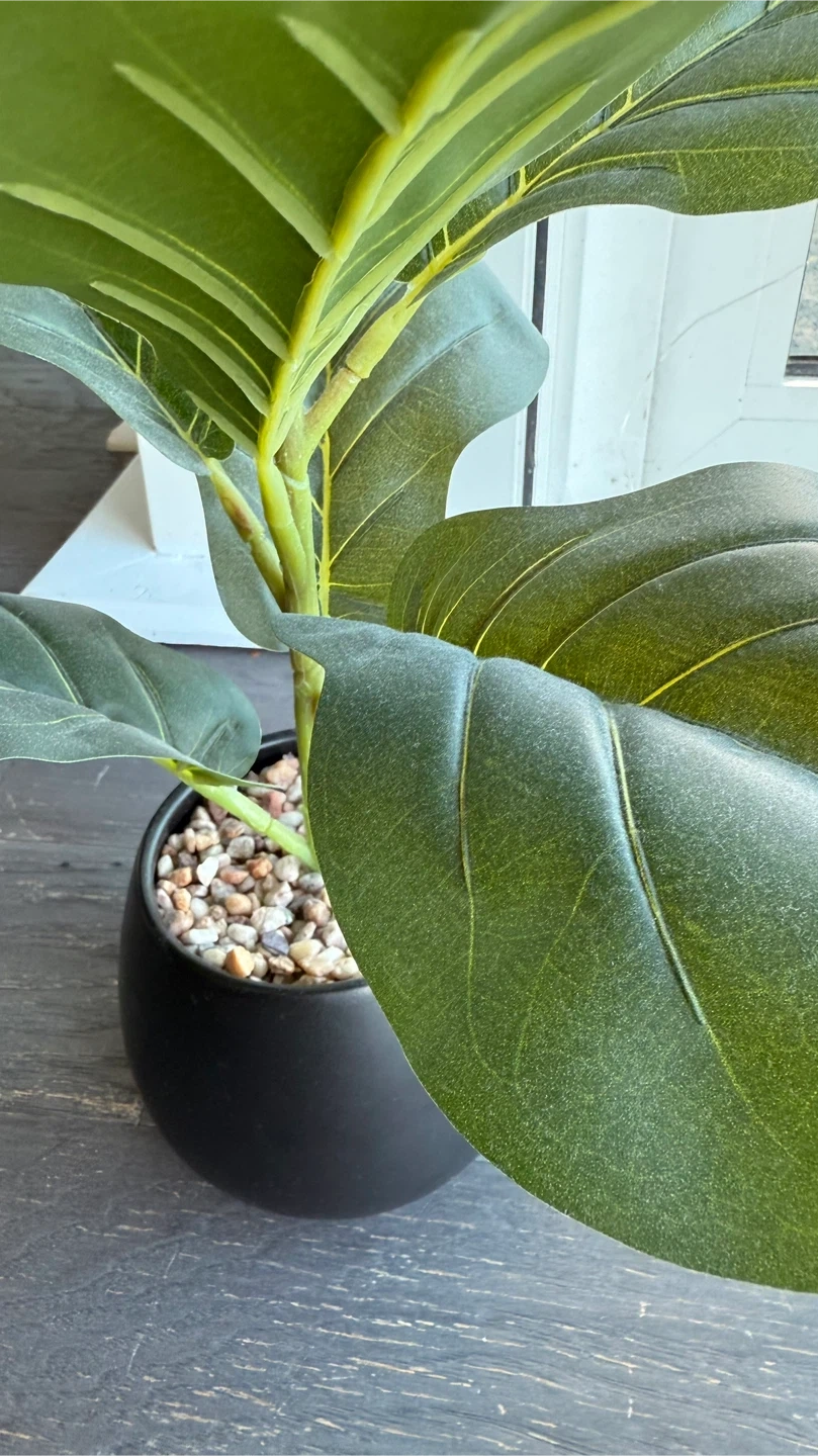 Beautiful, realistic-looking faux fiddle leaf fig in a sleek matte black pot. Adds a touch of greenery to any room — zero maintenance needed! Looks perfect in modern or minimalist spaces.