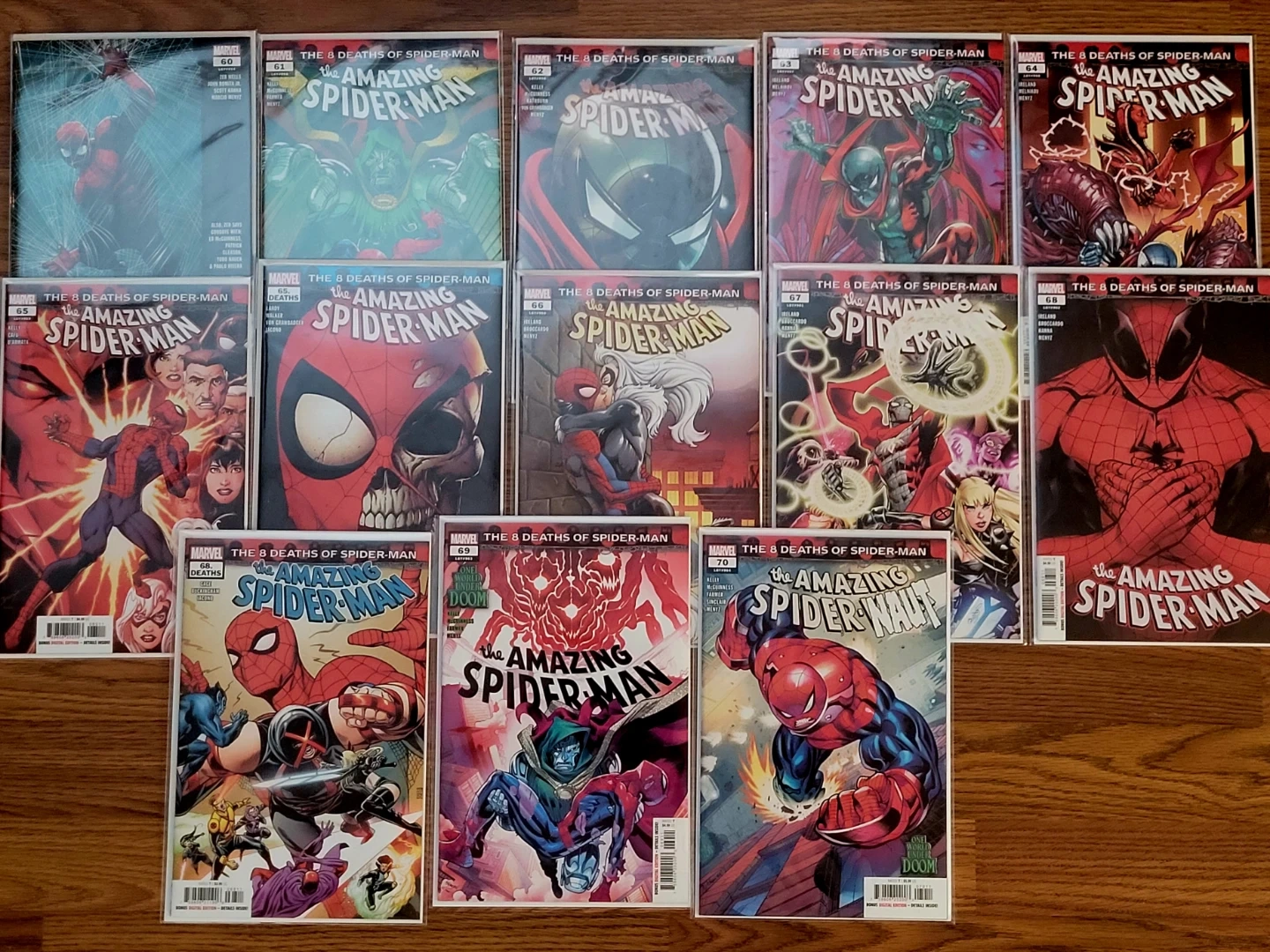 The Amazing Spider-Man comicbook. The 8 Deaths of Spider-Man storyline. Issues 60 to 70. Mint condition. 13 books in total.