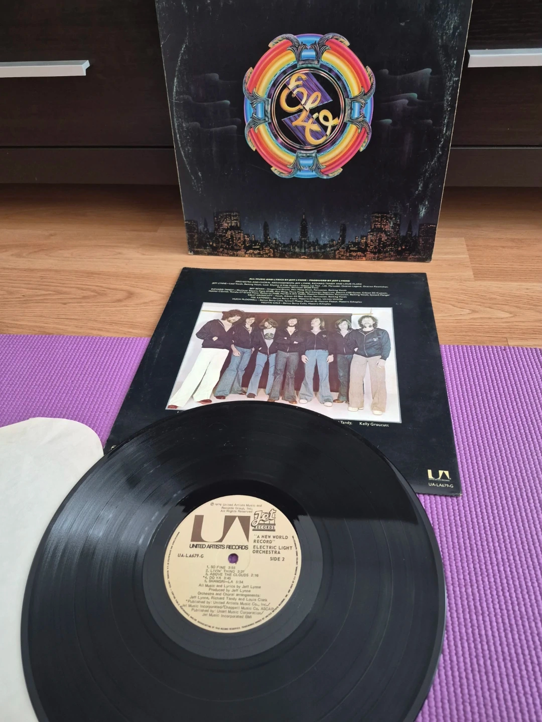 This is the 'A New World Record' LP from Electric Light Orchestra. The record includes Side 1 and Side 2. It's from 1976. The album features songs like 'Tightrope' and 'So Fine'.