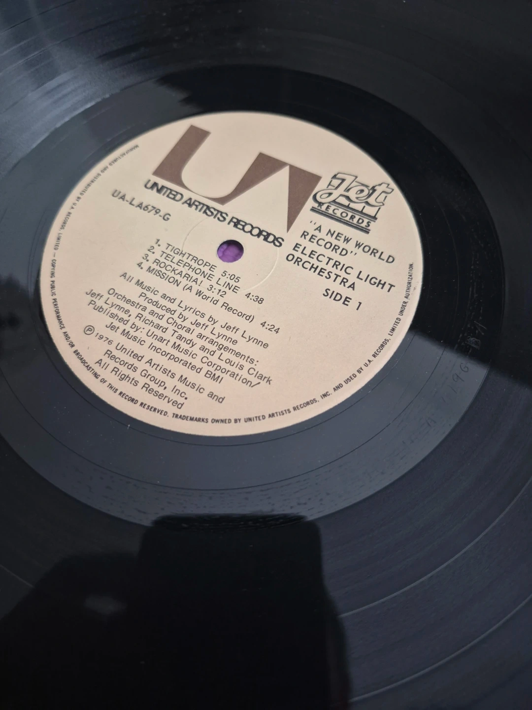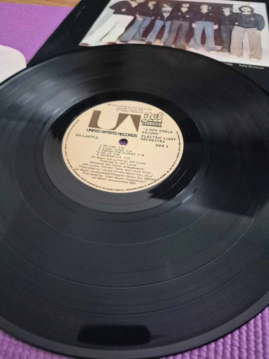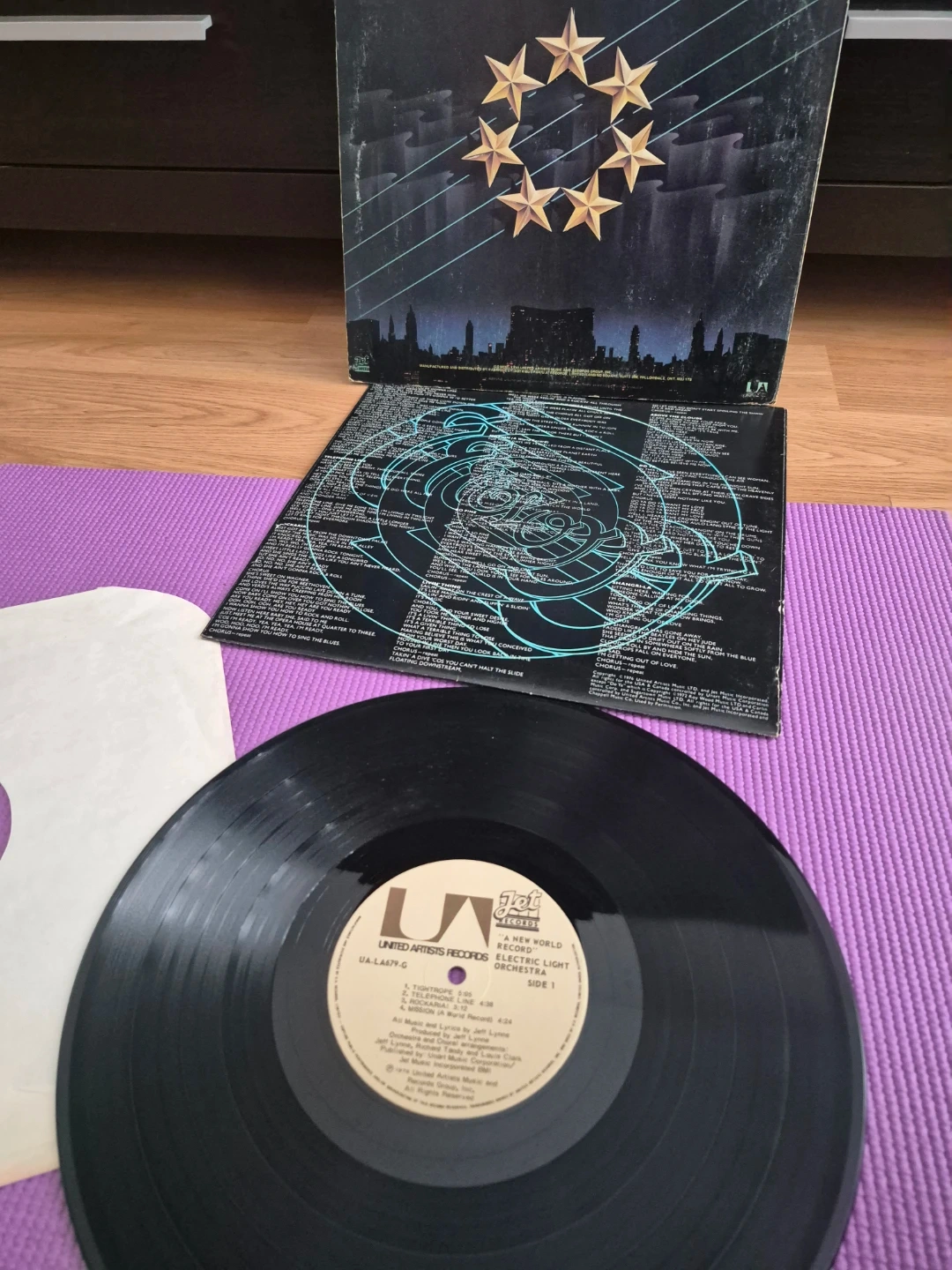This is the 'A New World Record' LP from Electric Light Orchestra. The record includes Side 1 and Side 2. It's from 1976. The album features songs like 'Tightrope' and 'So Fine'.