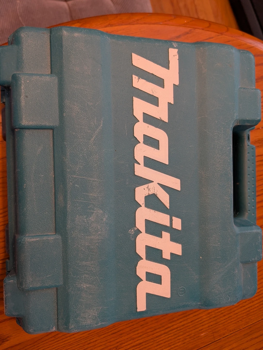 This is a Makita air framing nailer. It comes with a case and some Paslode staples. The nailer appears to be in good condition.