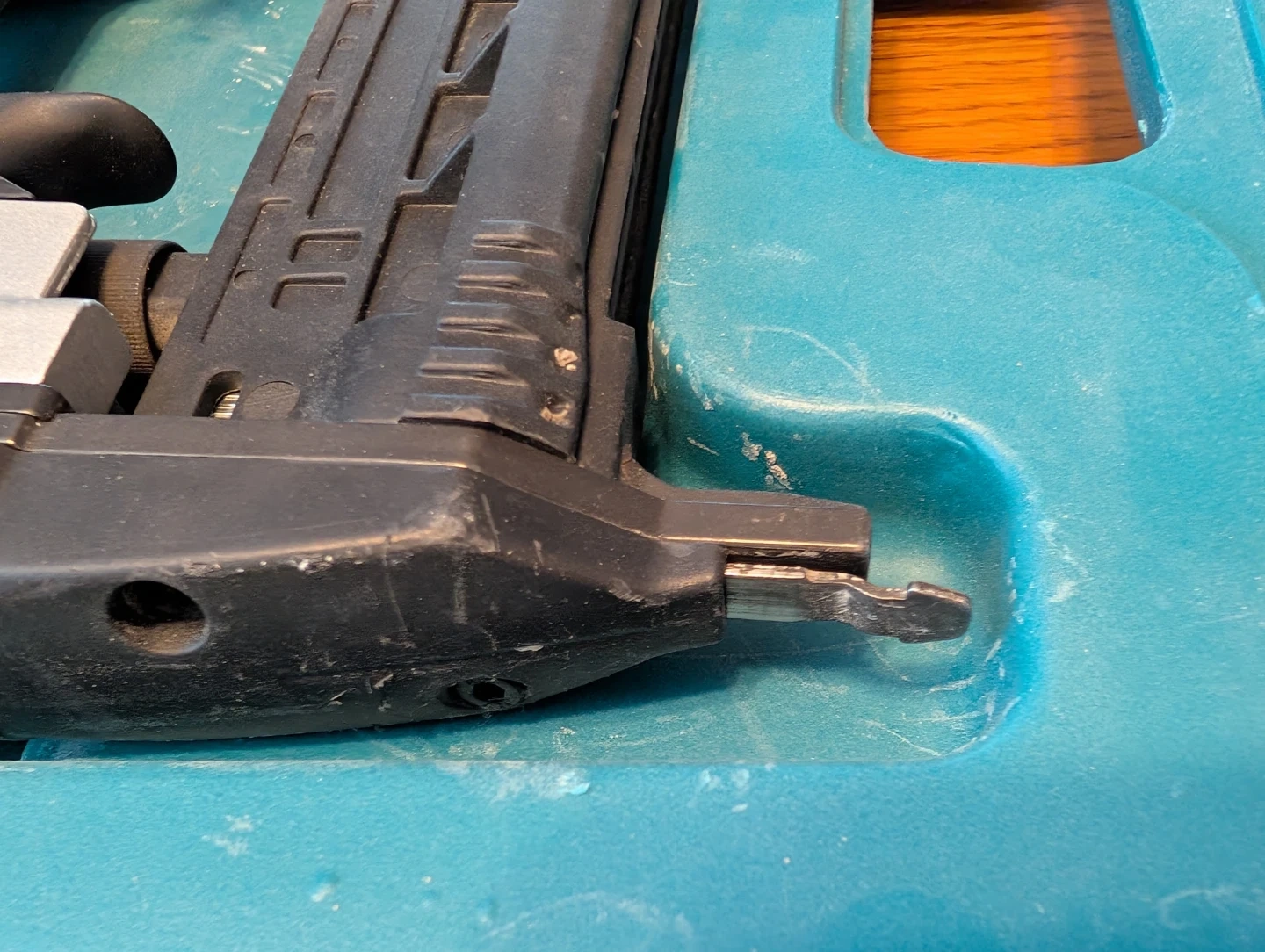 This is a Makita AT638A 1/4" Narrow Crown Stapler.
