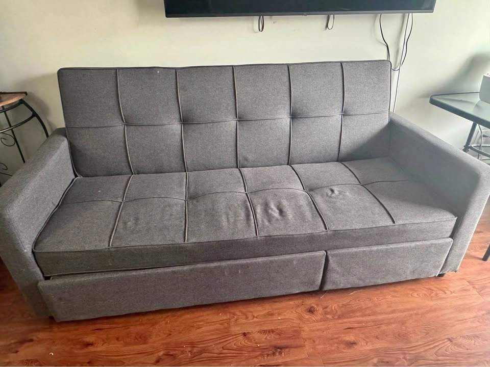3 seater couch. The back can be flattened, but it cannot be fully converted into a bed due to loose screws. Feel free to message if you have any questions!