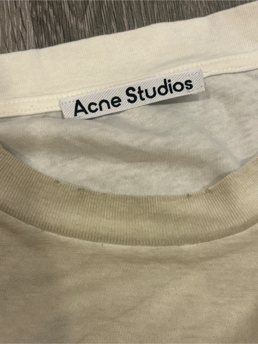 This is an Acne Studios long sleeve t-shirt with 'Stockholm 1996' graphic. It's a crew neck style. Cotton material.