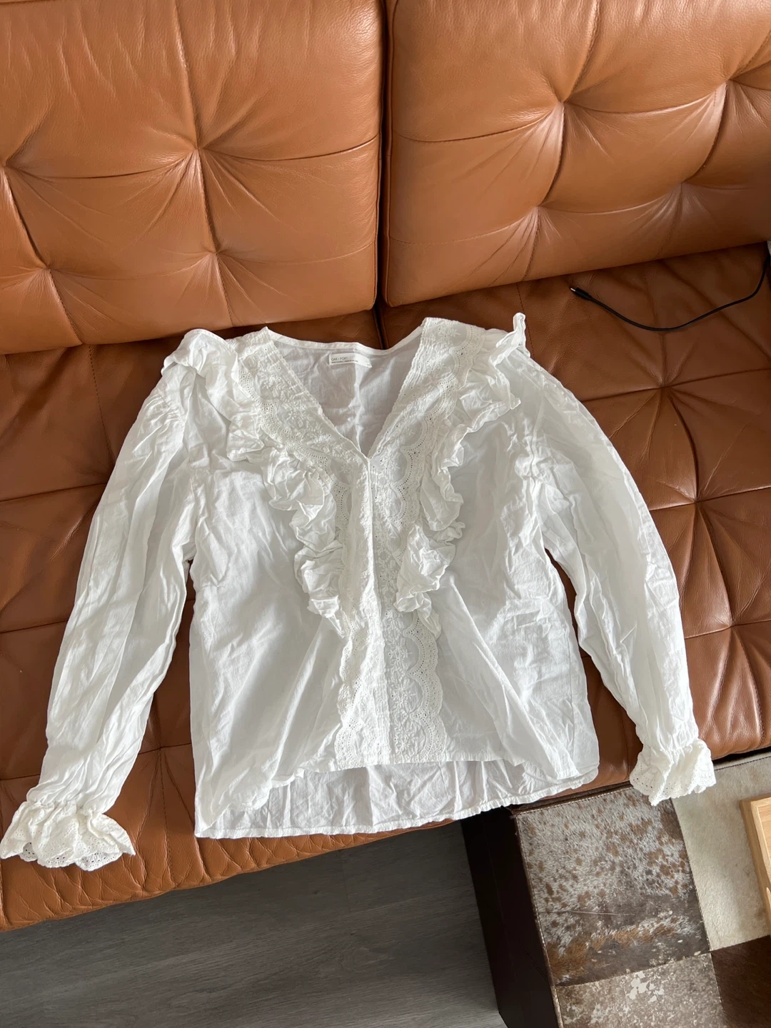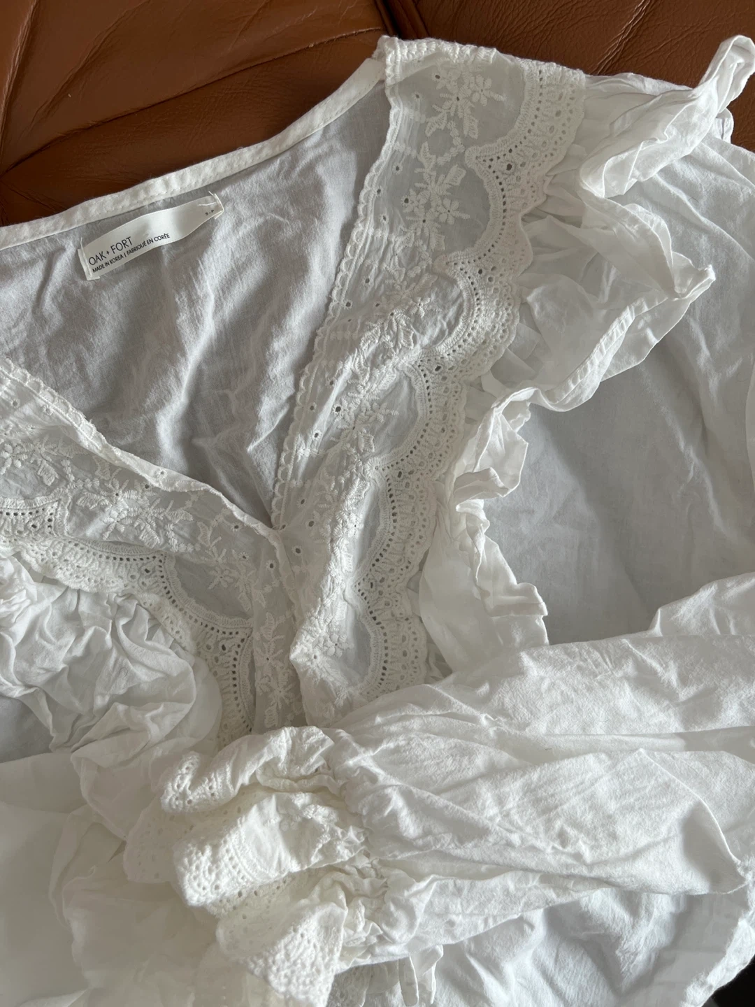Buy & SellOak + Fort White Embroidered Ruffle BlouseOak + Fort White Embroidered Ruffle Blouse$30Oak + Fort white blouse with embroidery and ruffled details. Features long sleeves with ruffled cuffs.ConditionLike newSizeSBrandOak + FortWHERE TO MEETCheck LocationView MapSELLERverifiedkimmyWaterfront Communities600 reviews0 chats·0 favorites·5 viewsSEND CHAT TO SELLERHi kimmy! I’m interested in your listing.Hi kimmy! I’m interested in your listing.Get the Karrot app to chatSign In to chat