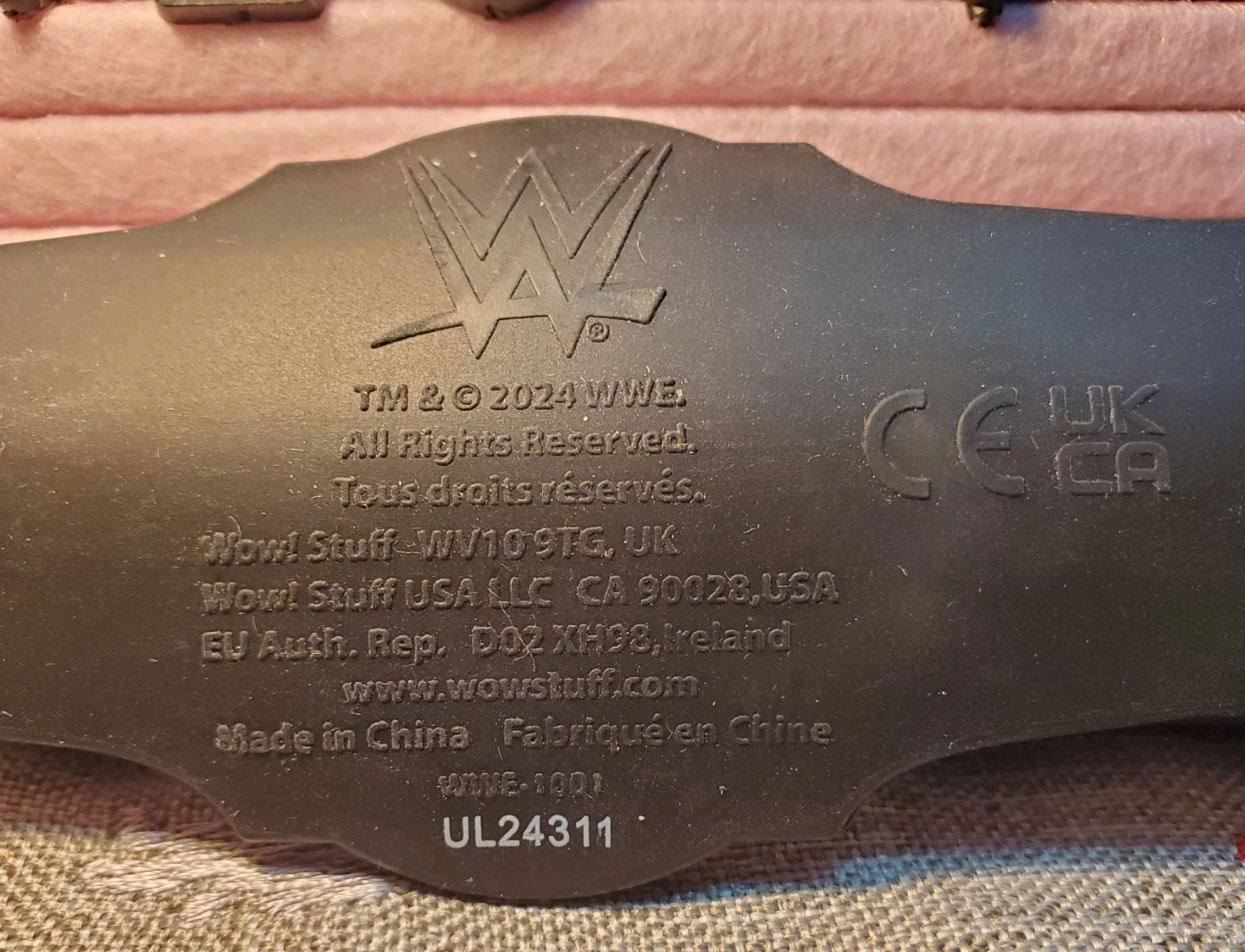 This is the WWE Intercontinental Champion slap band from Series 1. It's made in China and features the WWE logo. A fun accessory for any wrestling fan!
