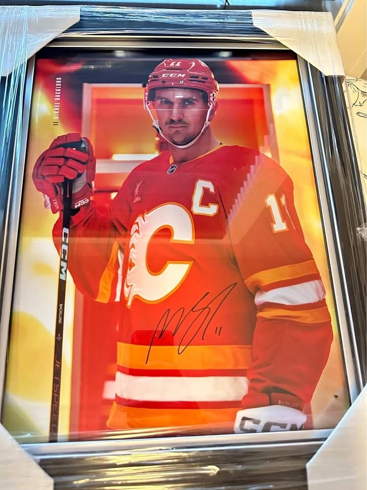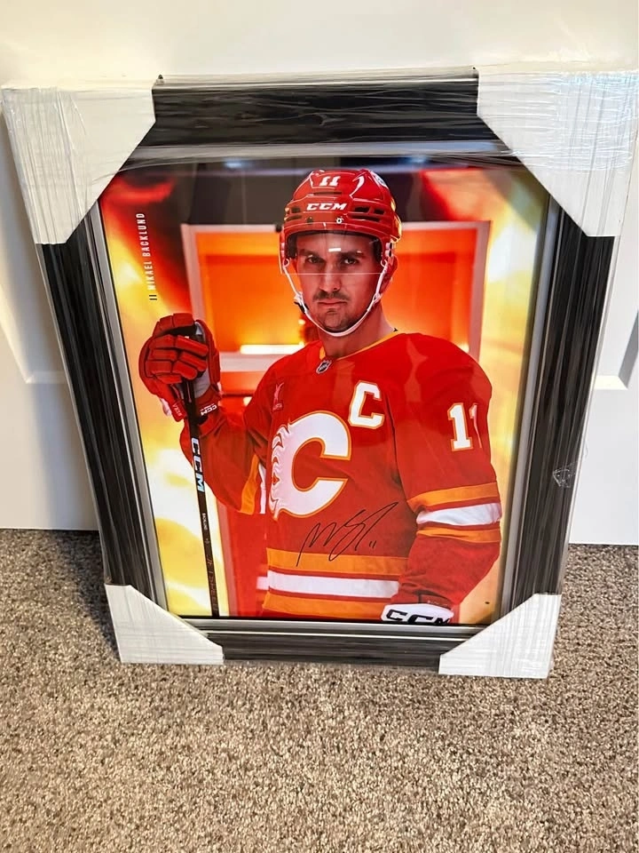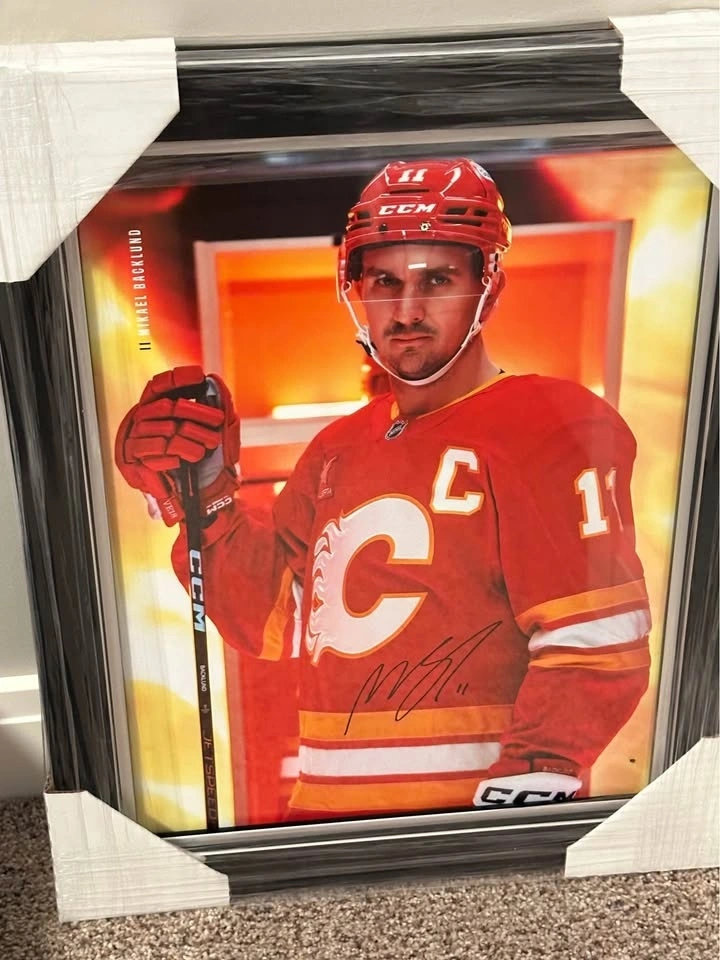 Brand new, never opened, autographed picture of Mikael Backlund for his 1,000th game with the Calgary Flames. Framed in dark wood with matte and glass. Cash for pick up.