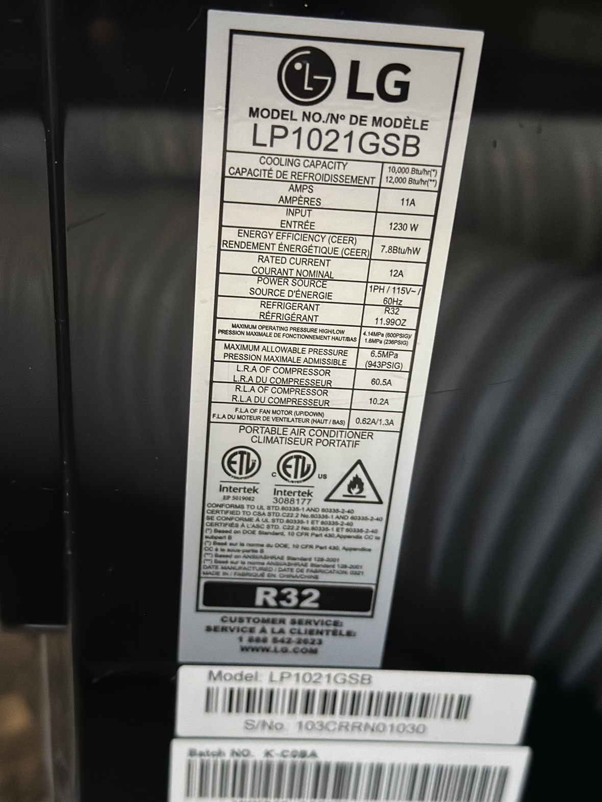 LG 12,000BTU Portable air conditioner