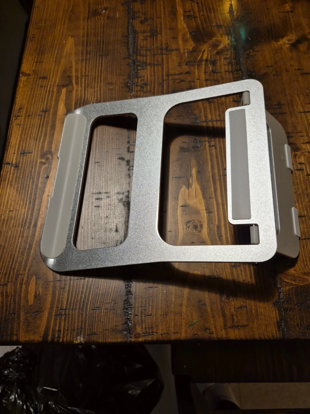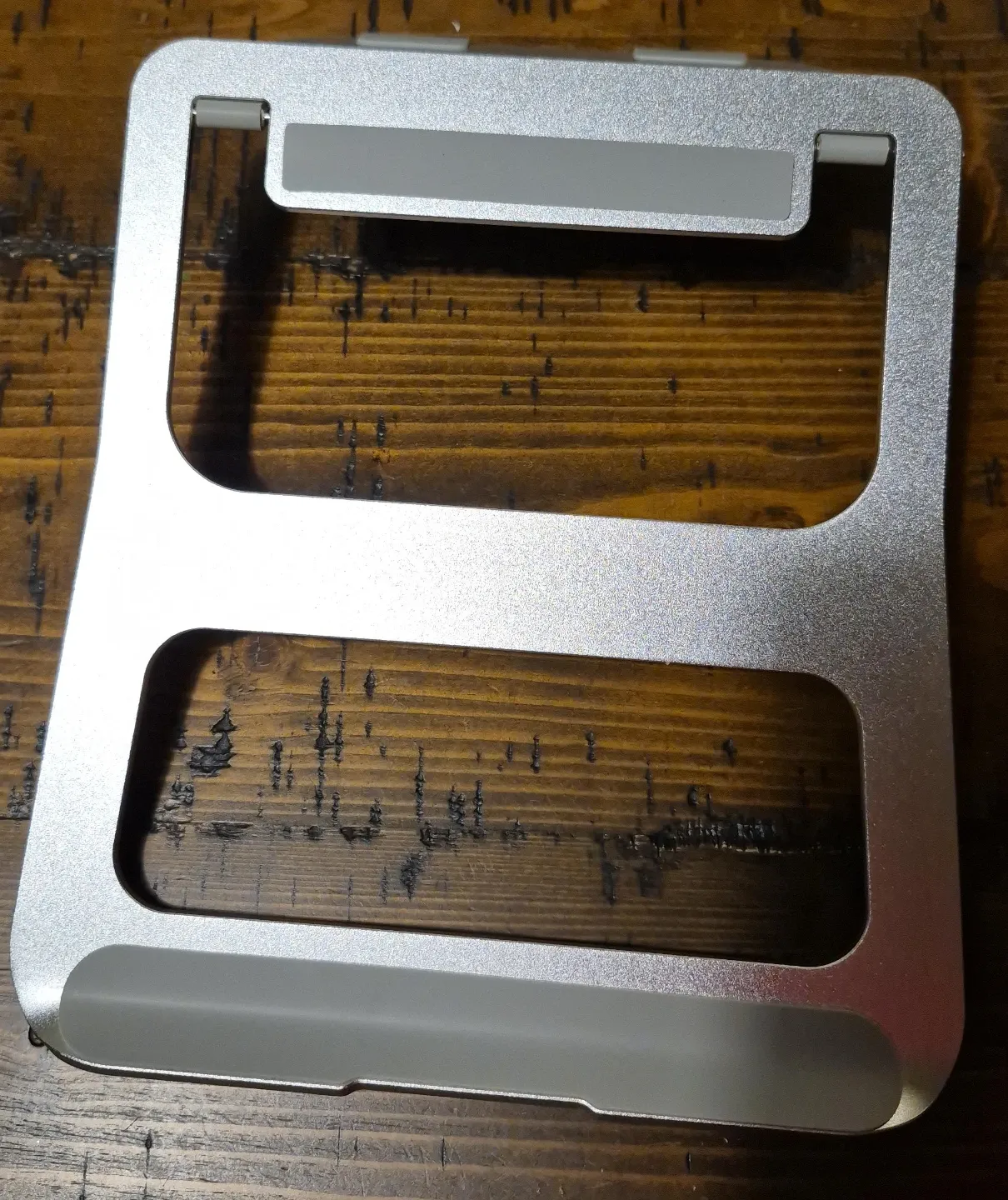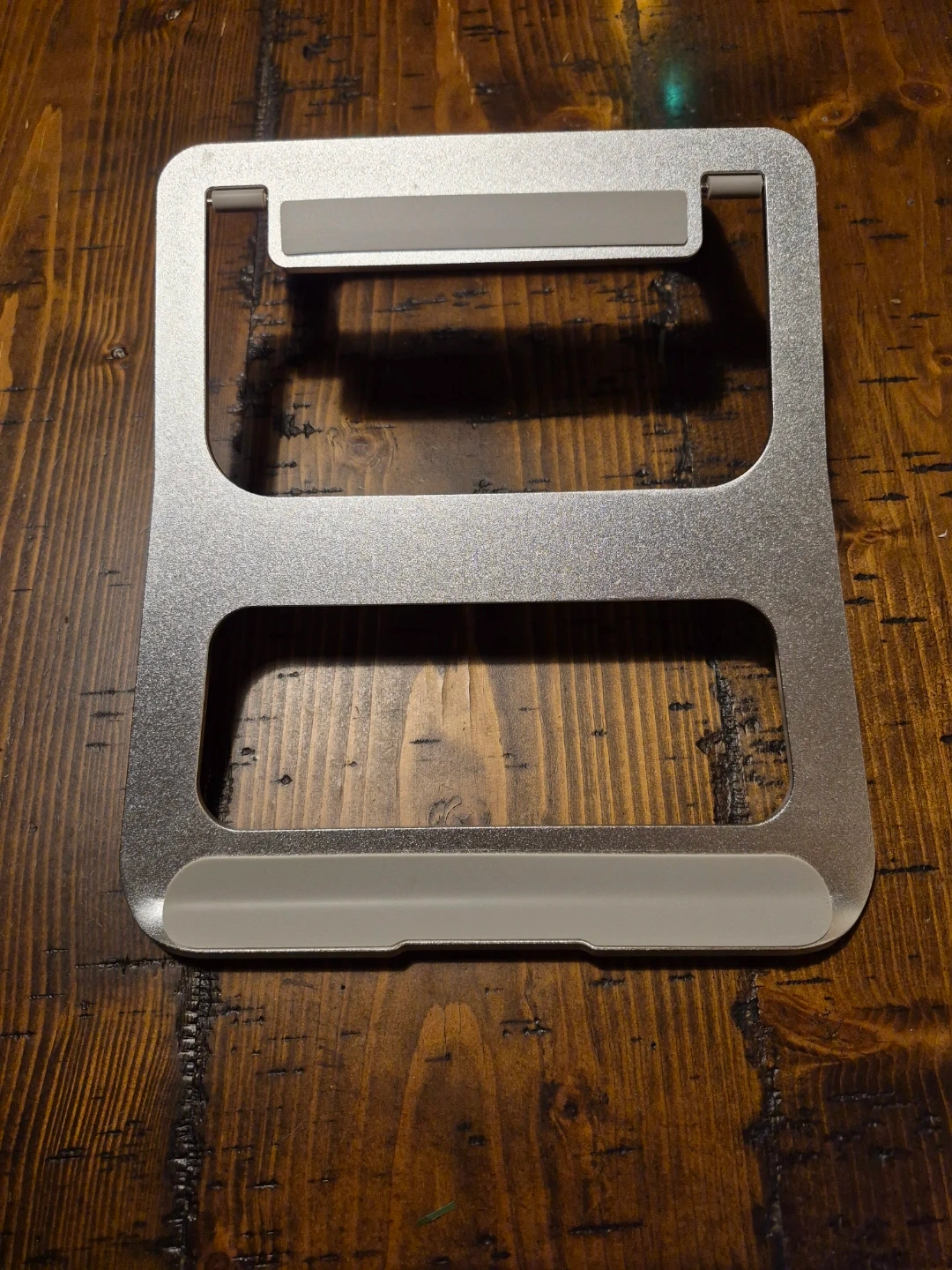 Selling a silver aluminum laptop stand. It's in great condition and perfect for raising your laptop to a more comfortable viewing height. It's lightweight and portable, making it easy to take with you wherever you go