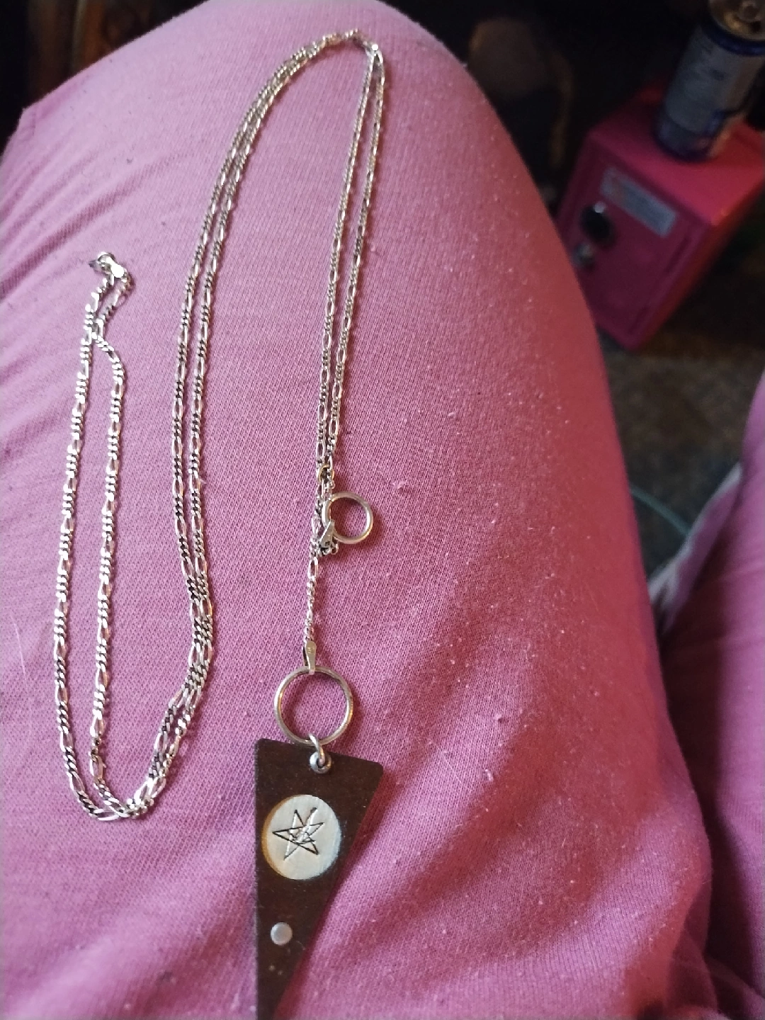 unique tin necklace with a falling star on it.