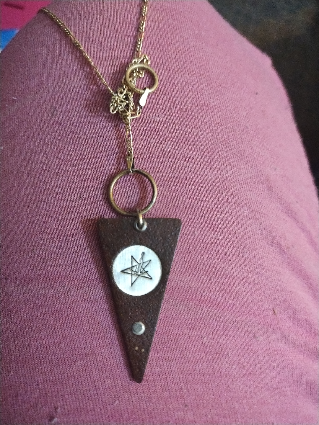 unique tin necklace with a falling star on it.